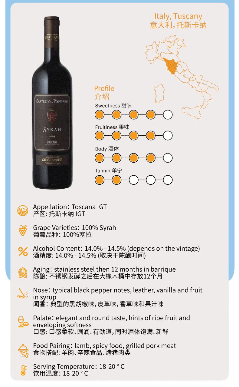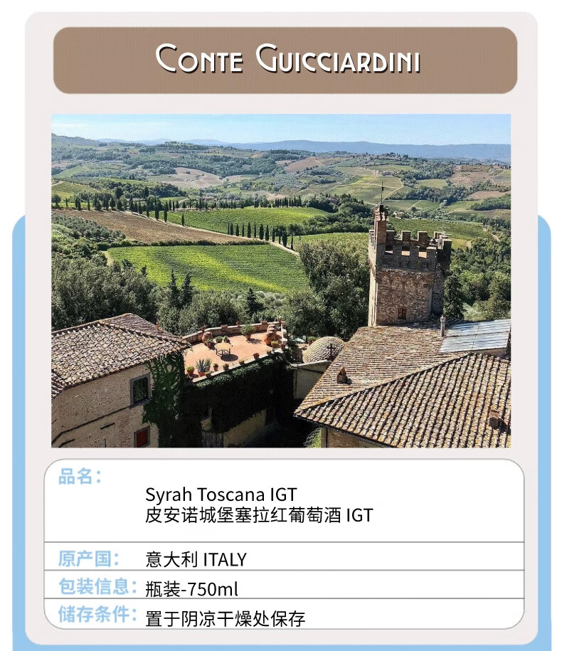 PUNI皮安诺城堡塞拉干红葡萄酒意大利原瓶进口红葡萄酒750ml