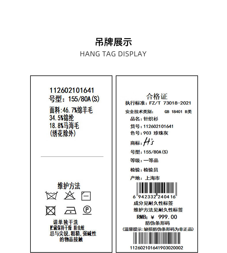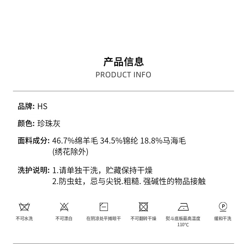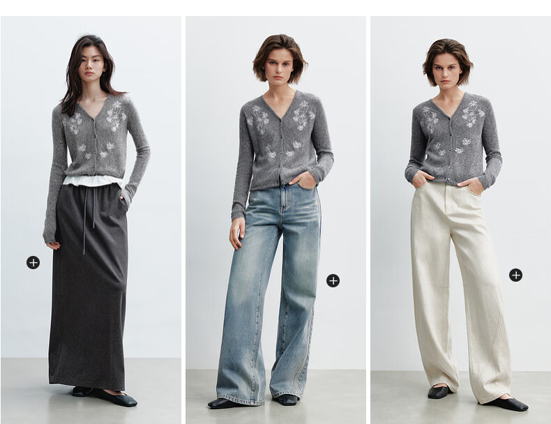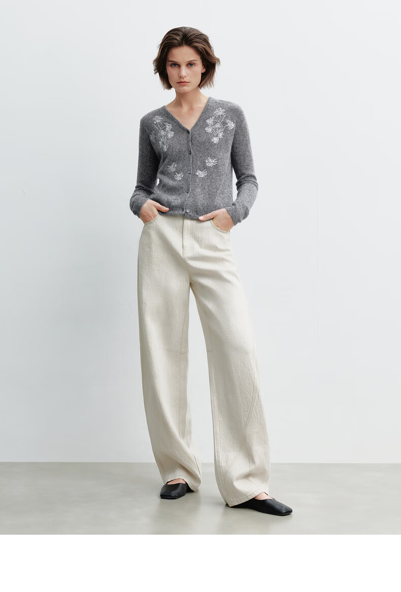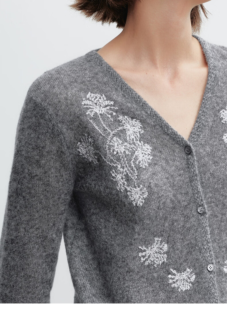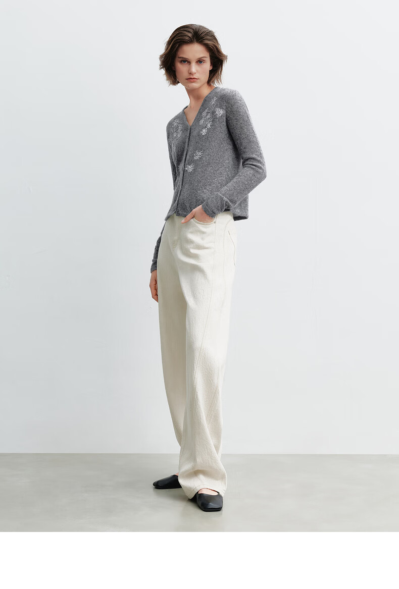 H's灰色针织开衫女26年春季新款高级设计感宽松廓形刺绣毛衣上衣 珍珠灰 S