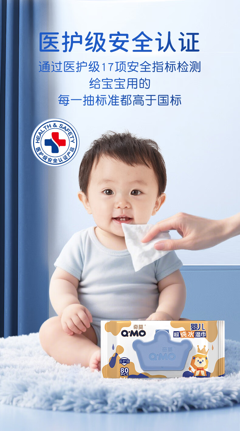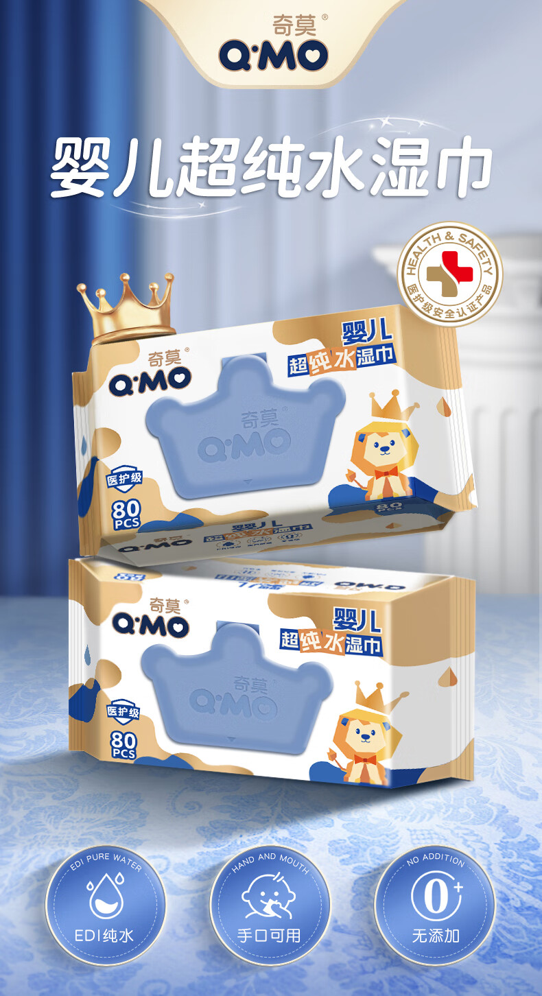 奇莫(Q-MO)至柔婴儿超纯水湿巾宝宝专用手口可用 湿巾 80抽 1包