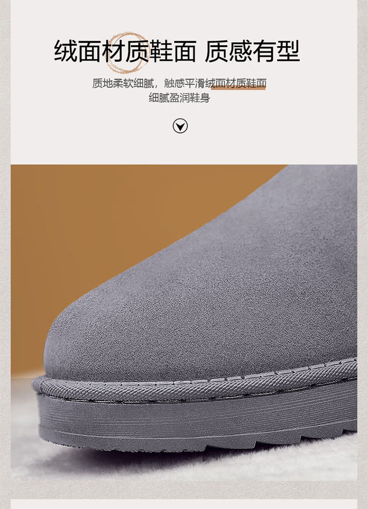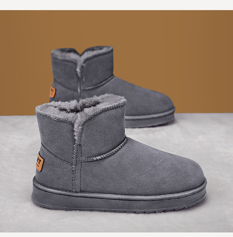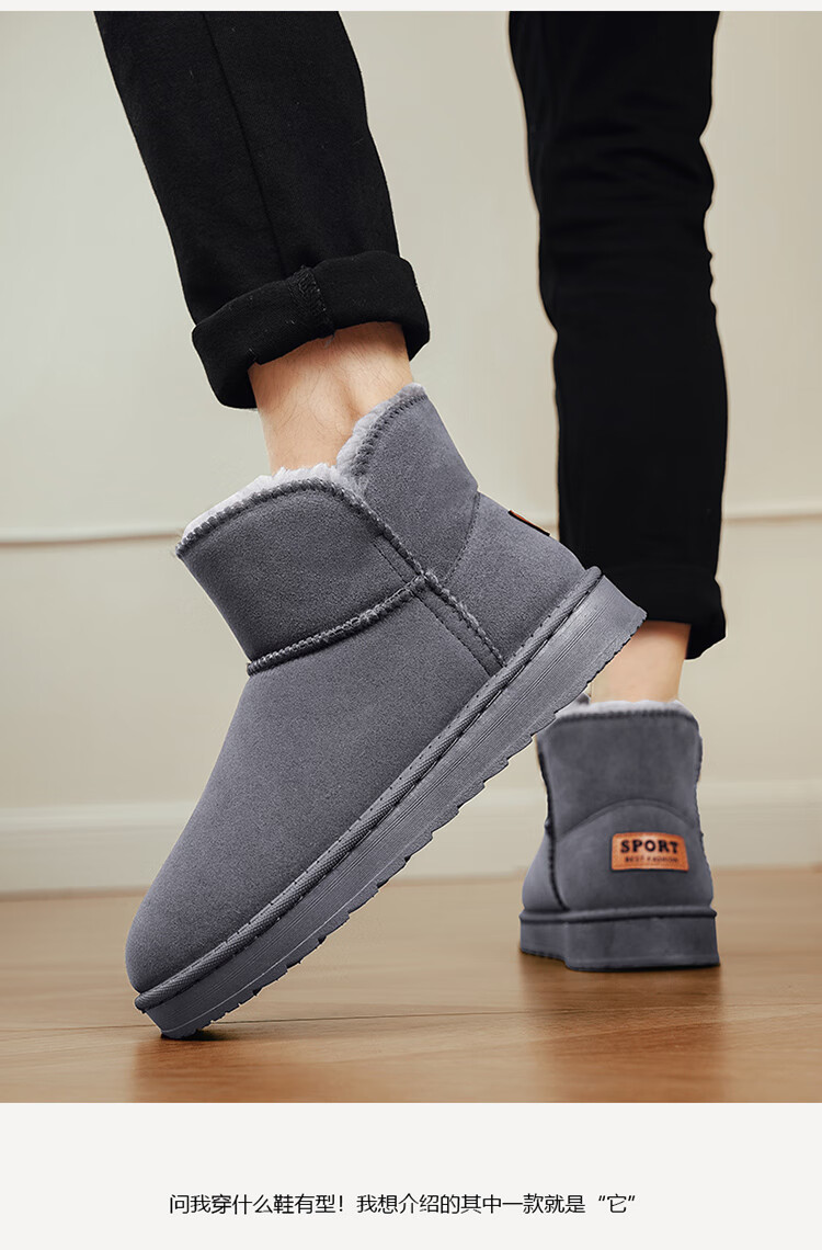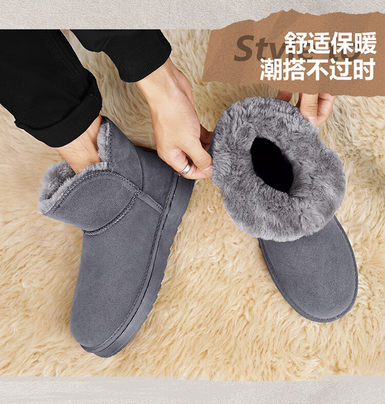 稻草人(MEXICAN)皮毛一体雪地靴男款冬季加绒加厚保暖高帮一脚蹬面包棉鞋男东北潮 灰色 36
