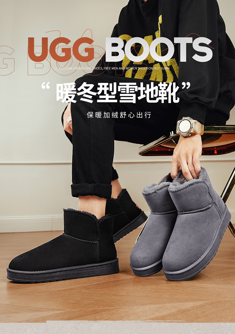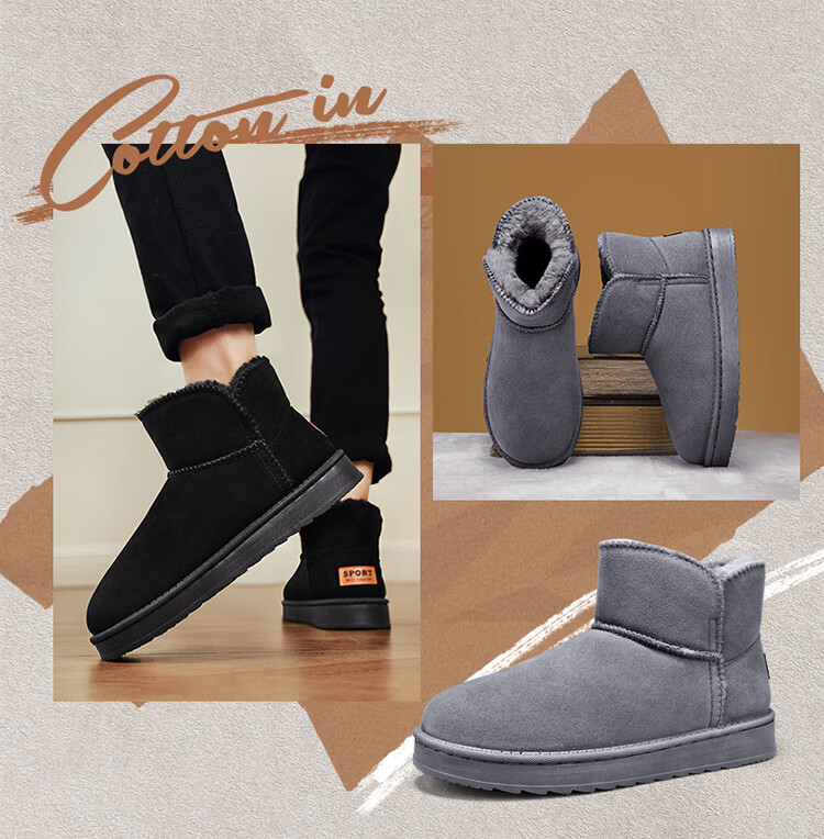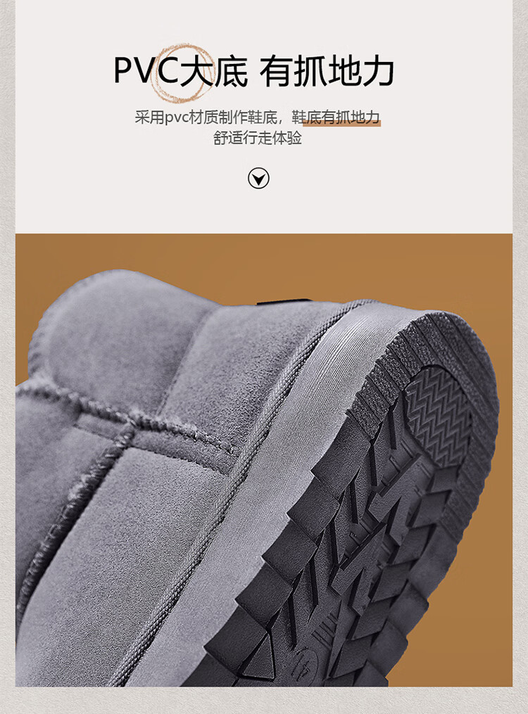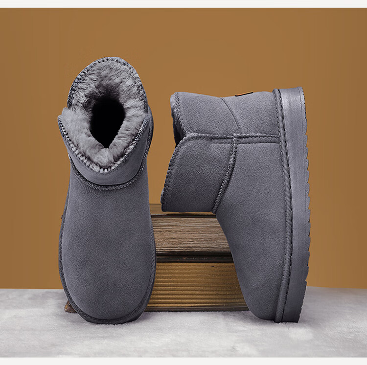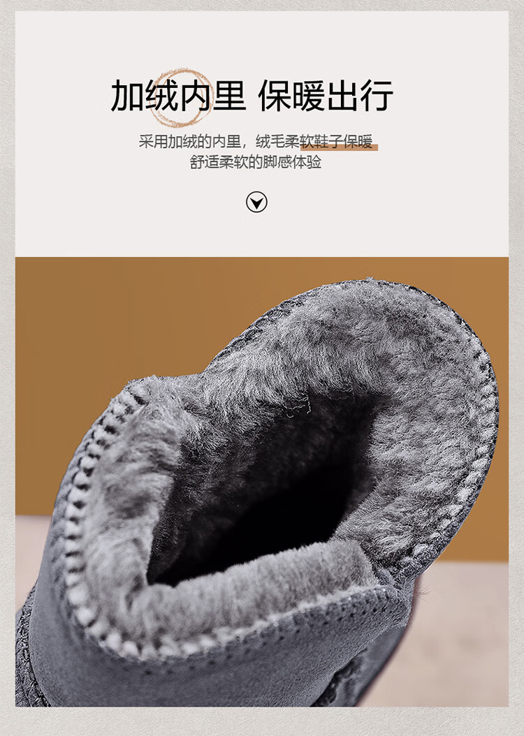 稻草人(MEXICAN)皮毛一体雪地靴男款冬季加绒加厚保暖高帮一脚蹬面包棉鞋男东北潮 灰色 36