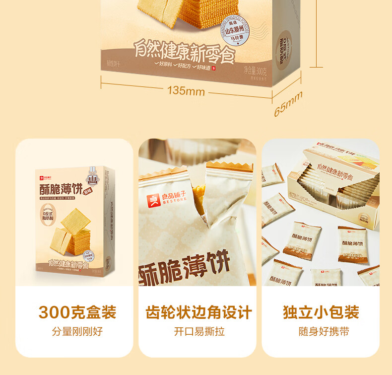 良品铺子酥脆薄饼薄脆饼干原味早餐饼干休闲零食年货小吃小零食300g