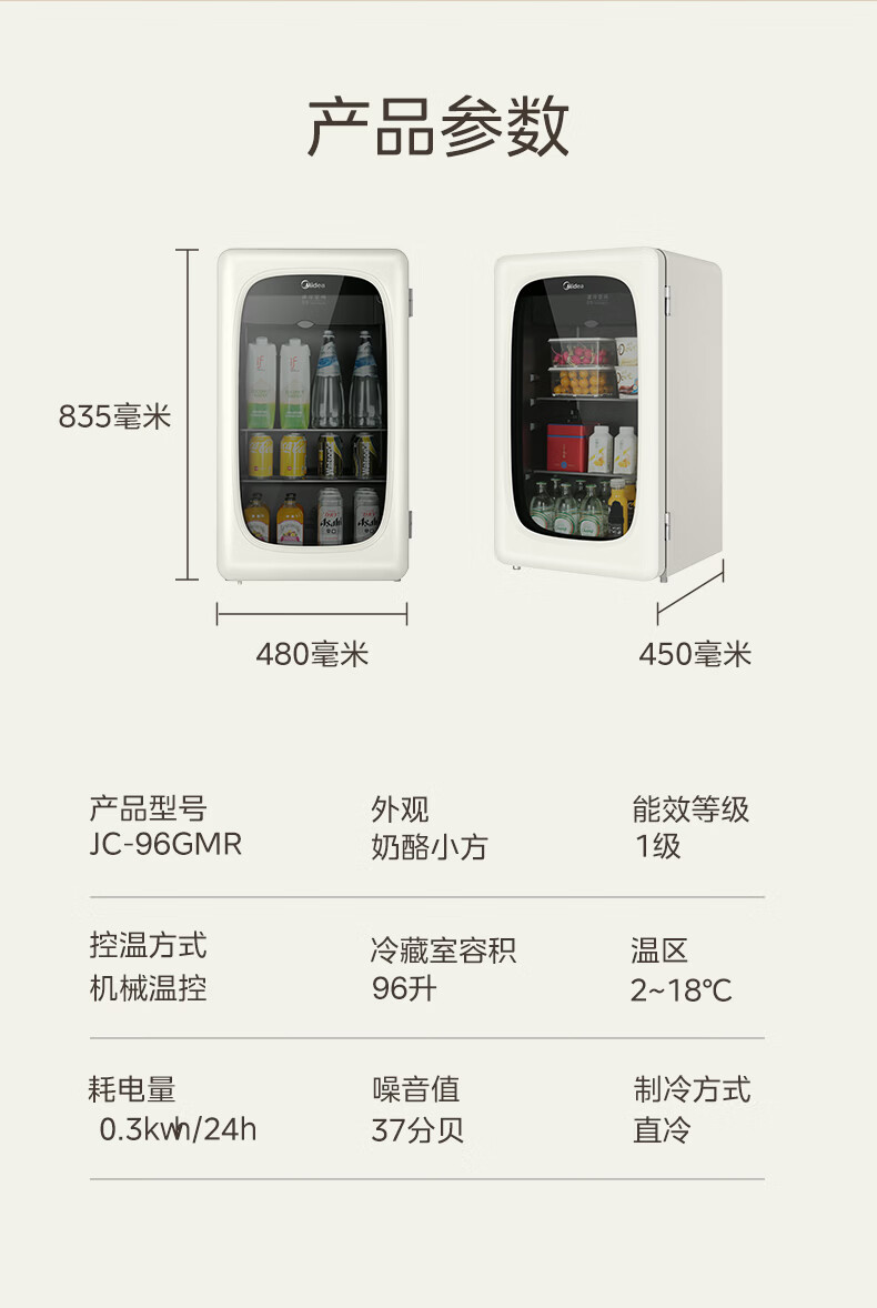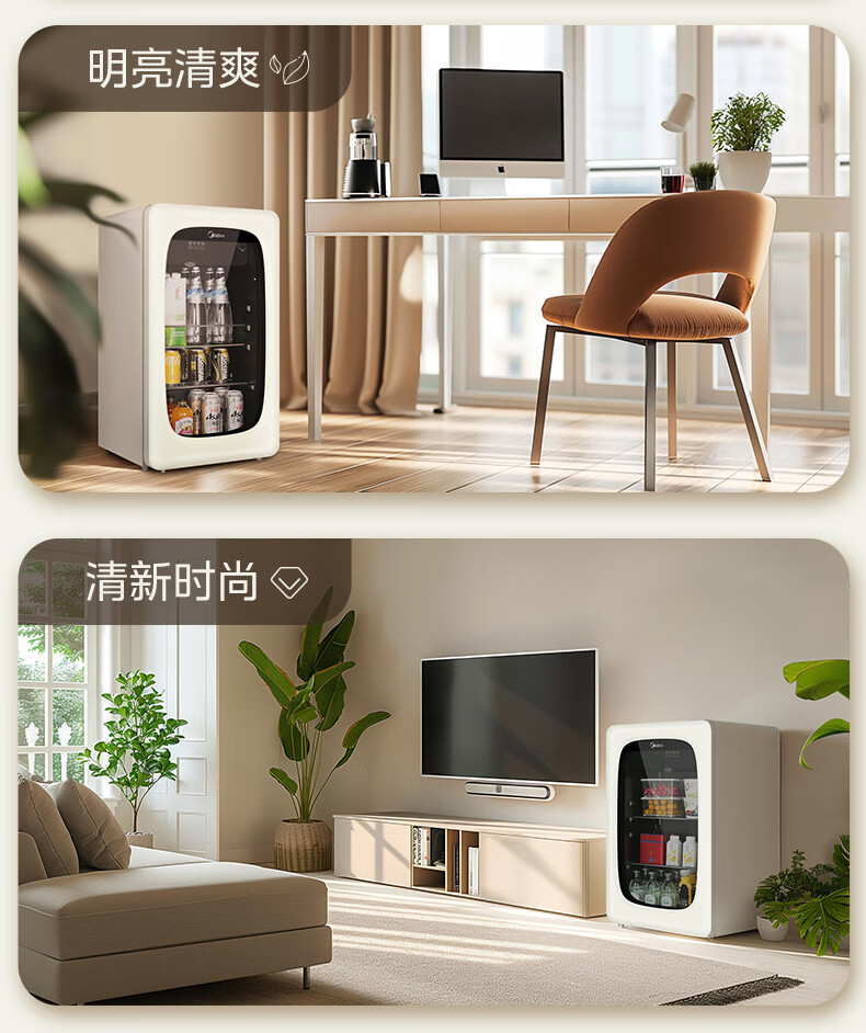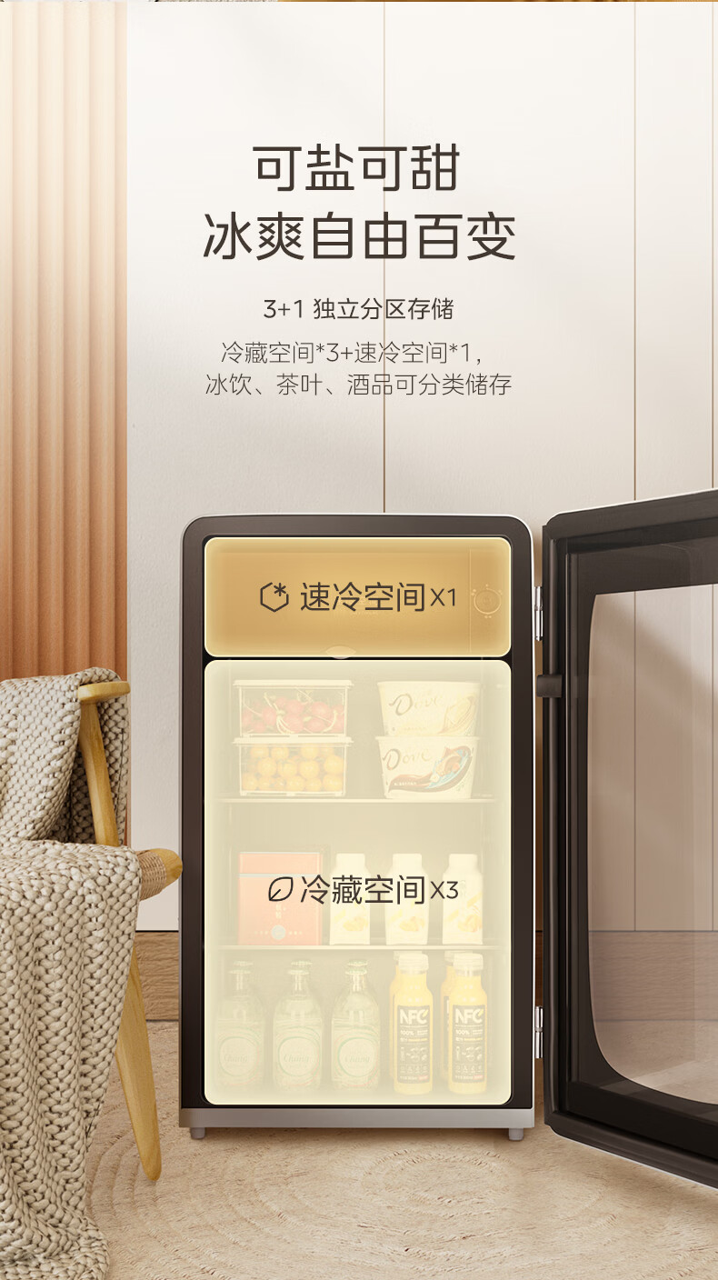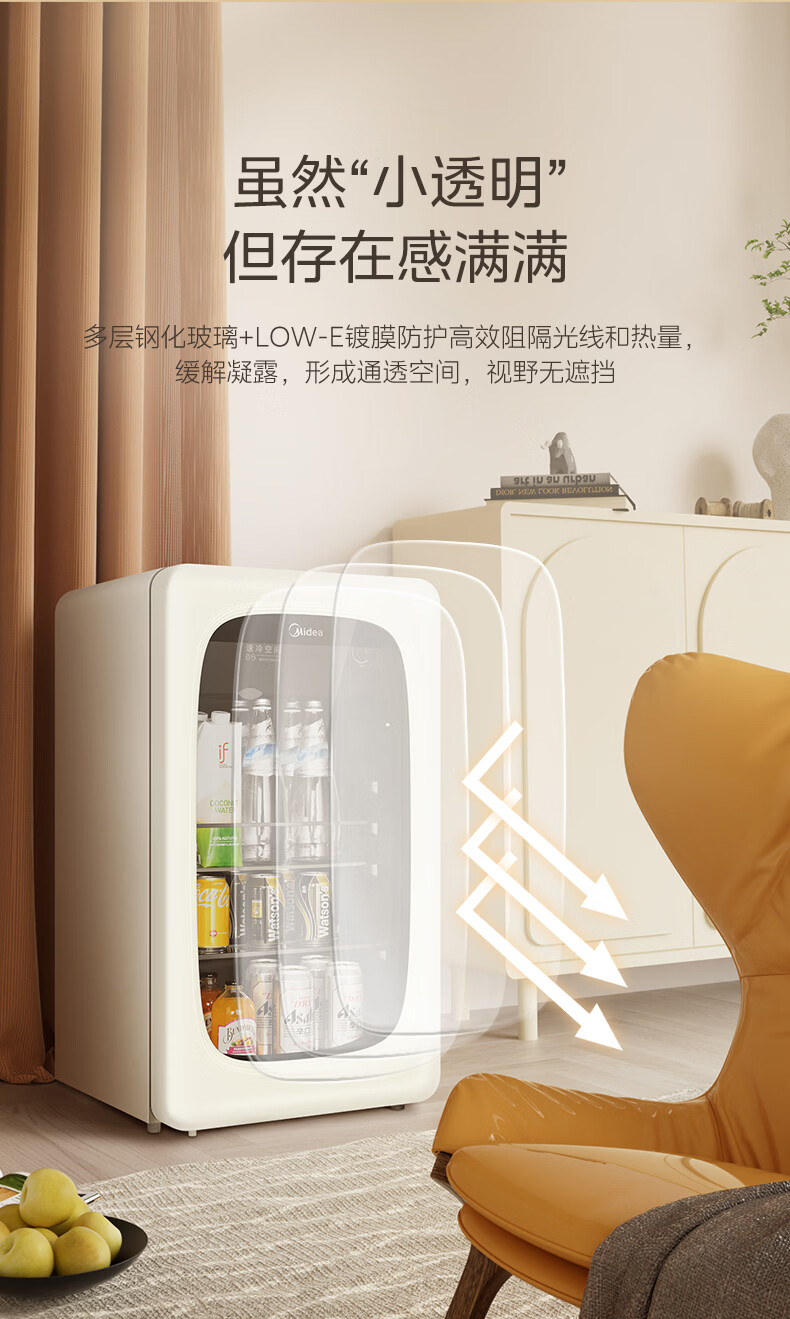 美的(Midea)奶酪小方家用冰吧电竞房酒店客厅立式冰柜饮料水果红酒保鲜柜节能低噪玻璃门一级能效冰箱冷柜 【可爱多98升】JC-98GM(E)