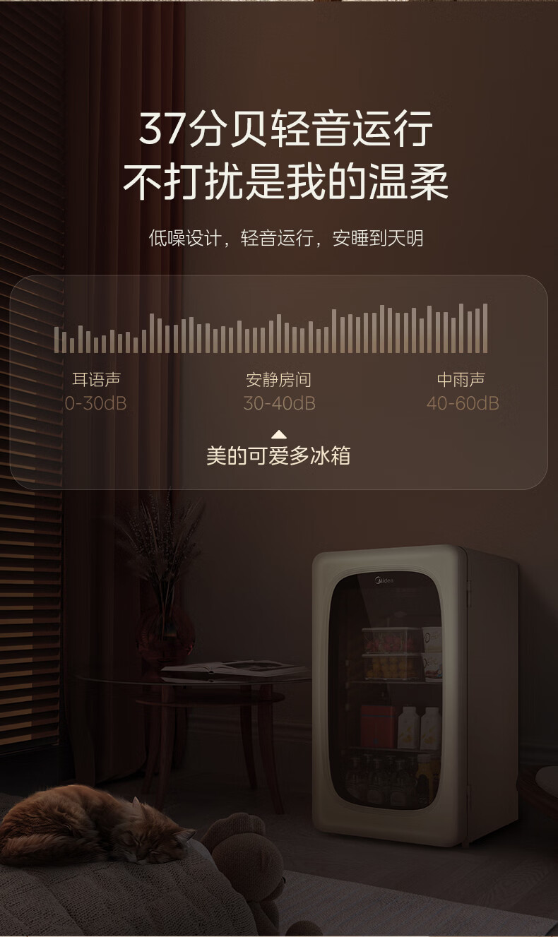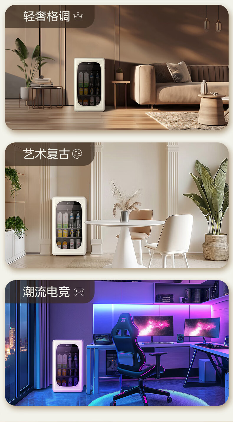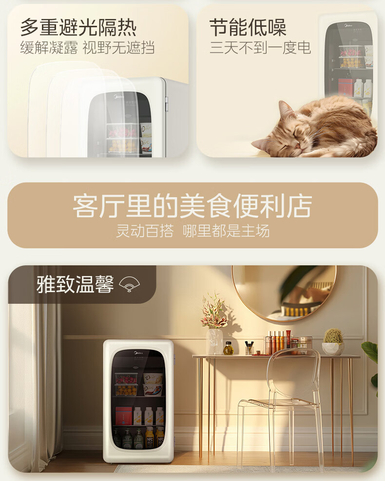 美的(Midea)奶酪小方家用冰吧电竞房酒店客厅立式冰柜饮料水果红酒保鲜柜节能低噪玻璃门一级能效冰箱冷柜 【可爱多98升】JC-98GM(E)