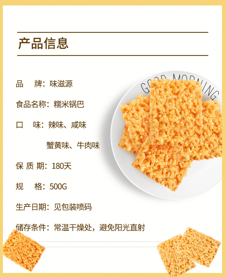 味滋源 糯米锅巴500g盒装牛肉味独立包装小零食安徽特产怀旧小吃