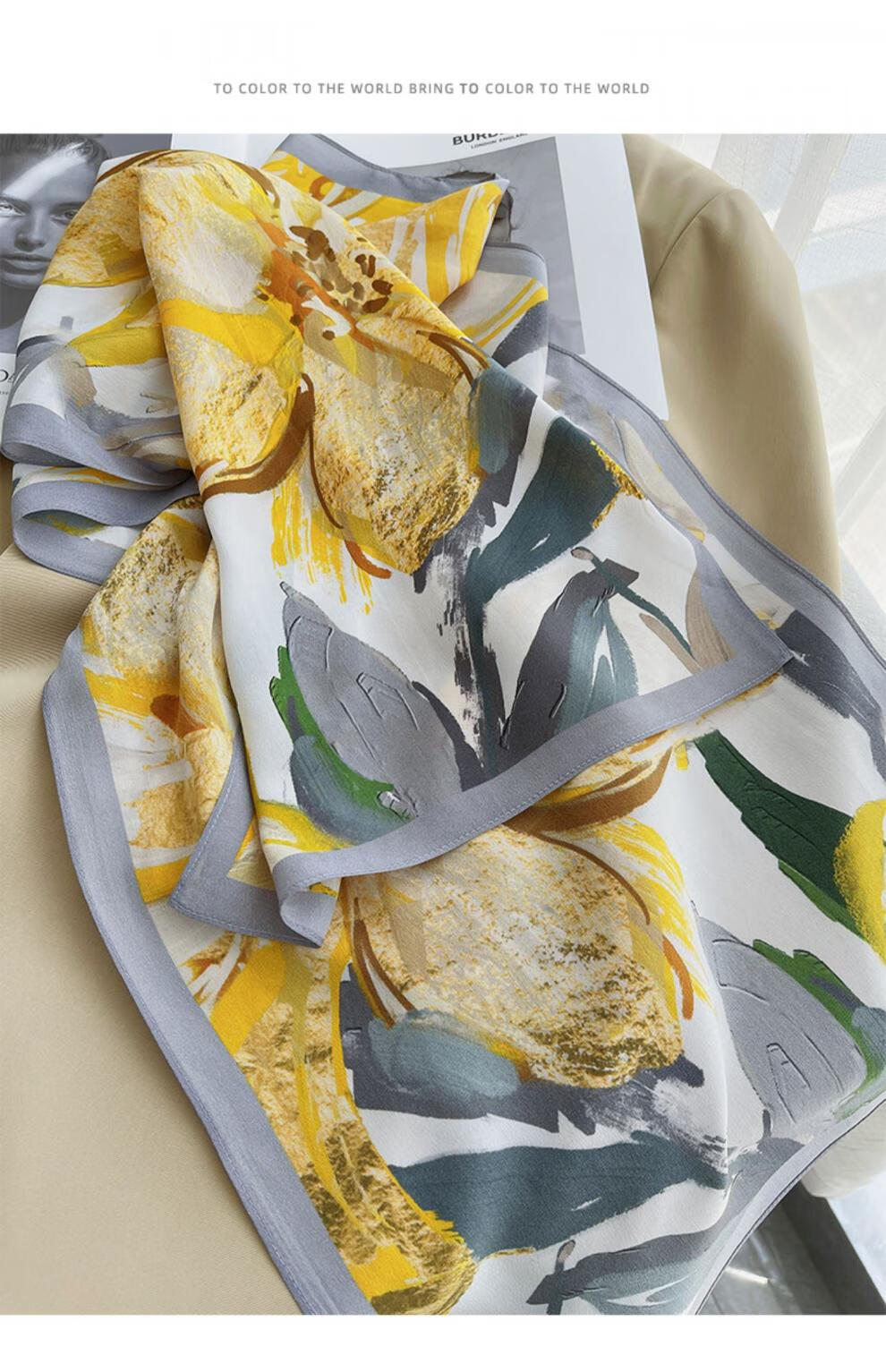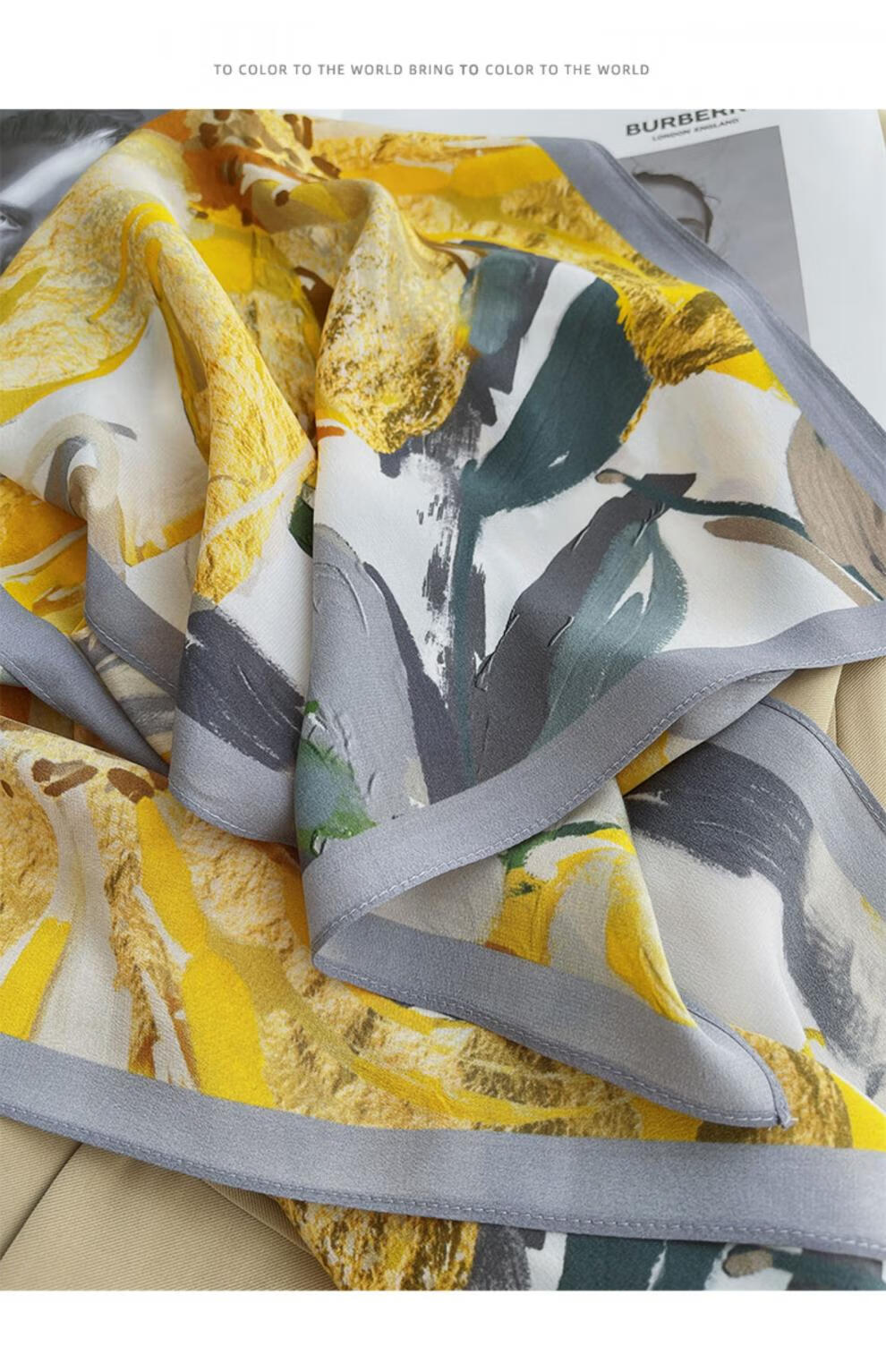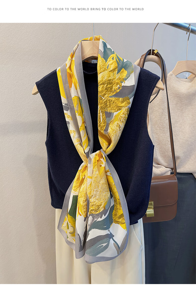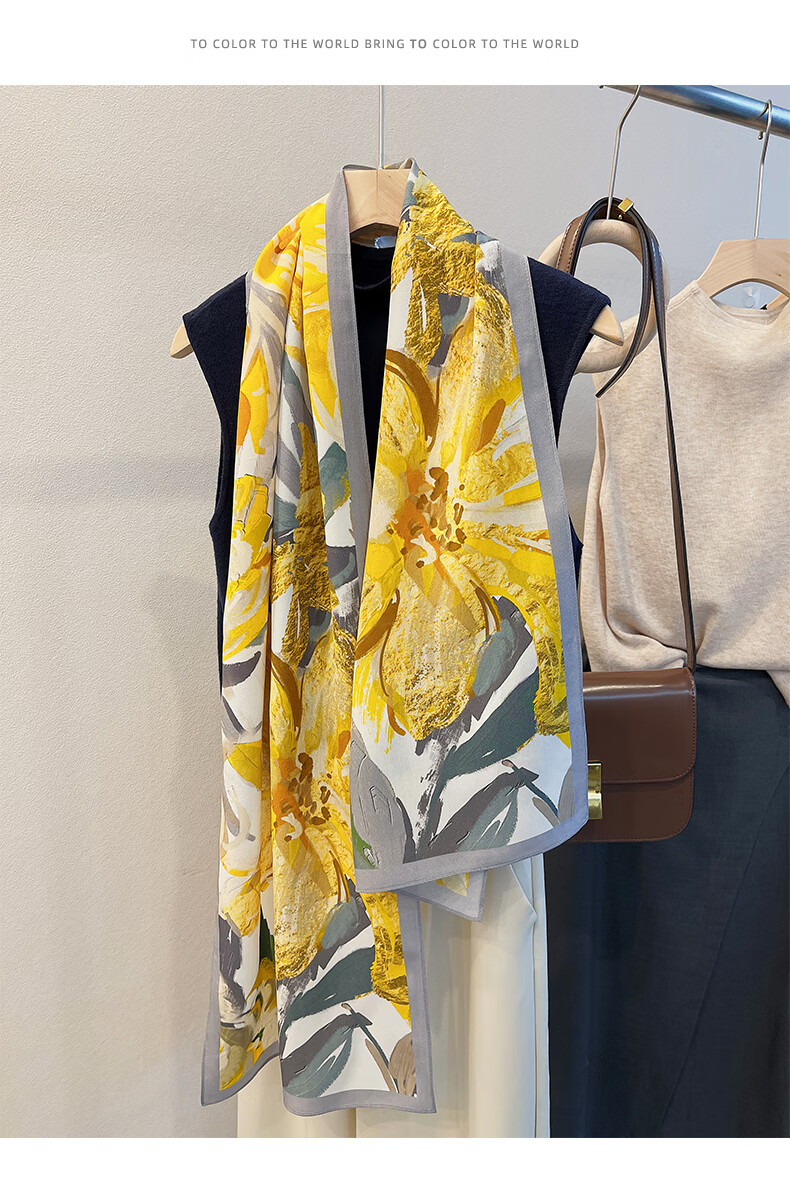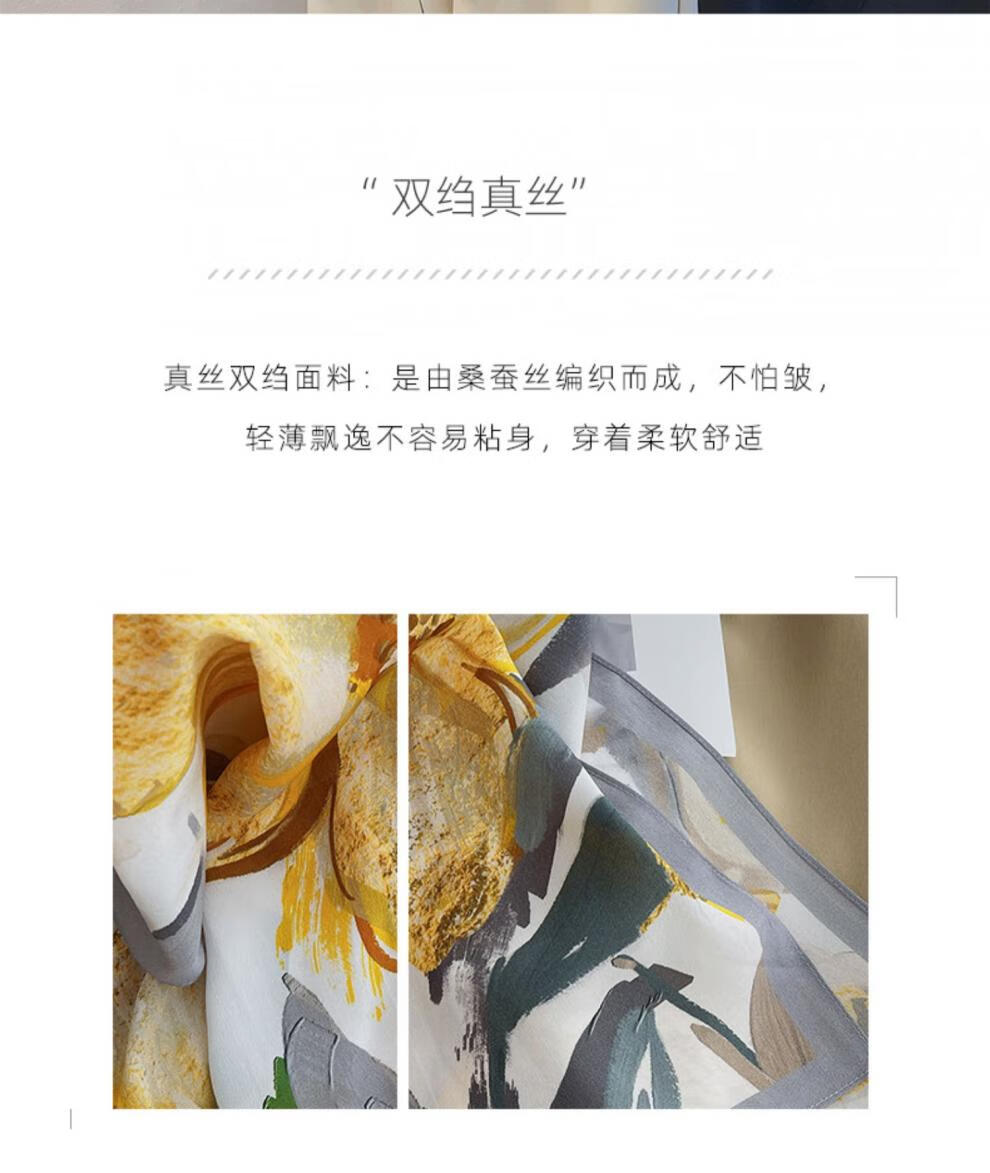 BGUG春夏新款双绉丝巾女真丝长巾百搭薄款桑蚕丝围巾时尚领巾防晒披肩 绽放