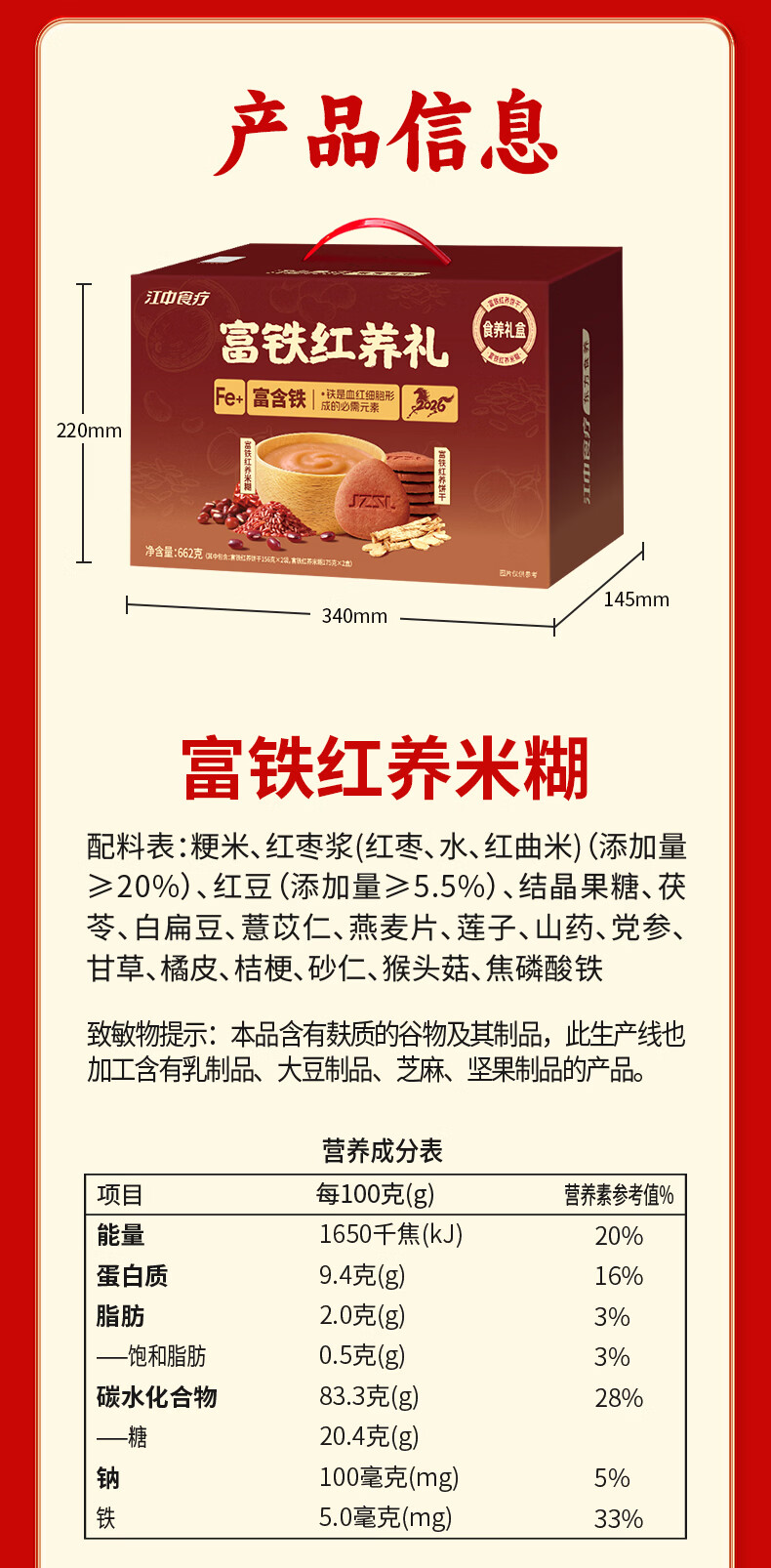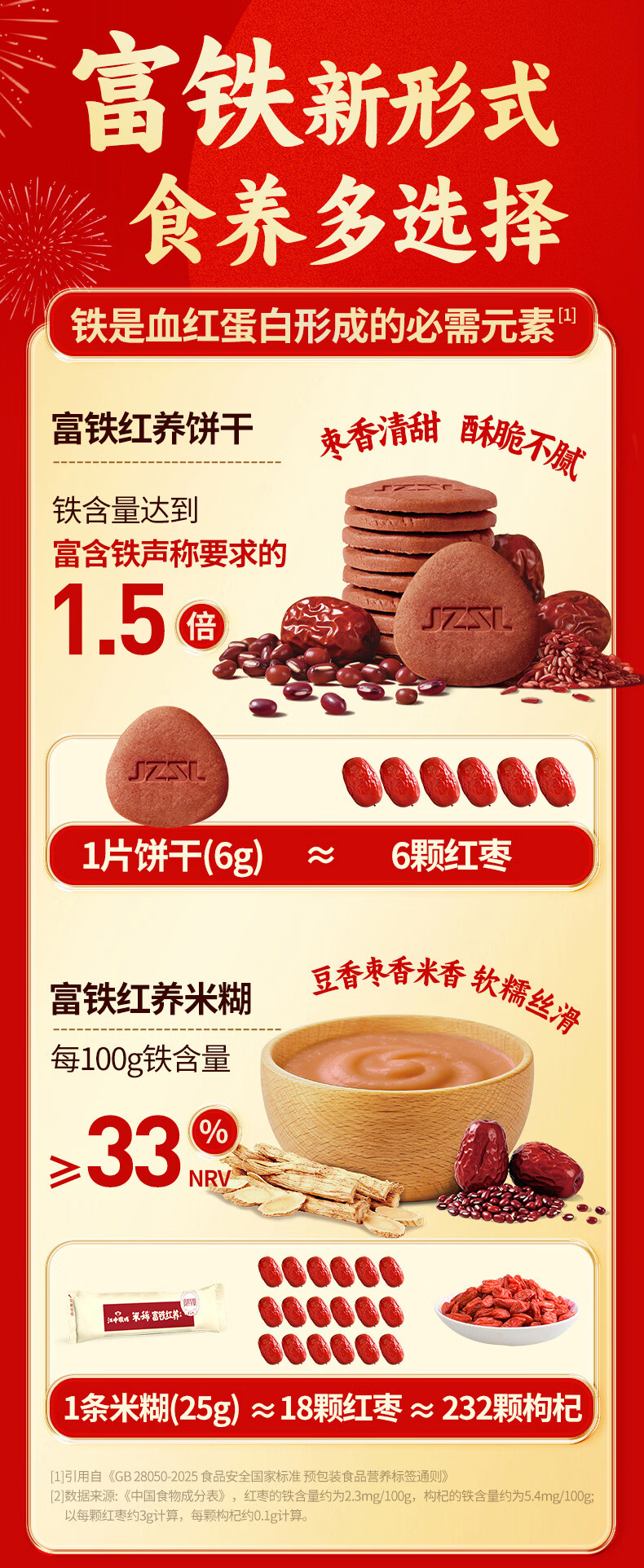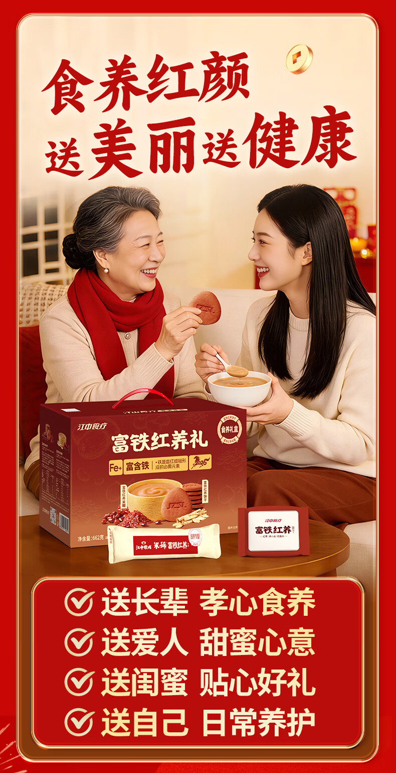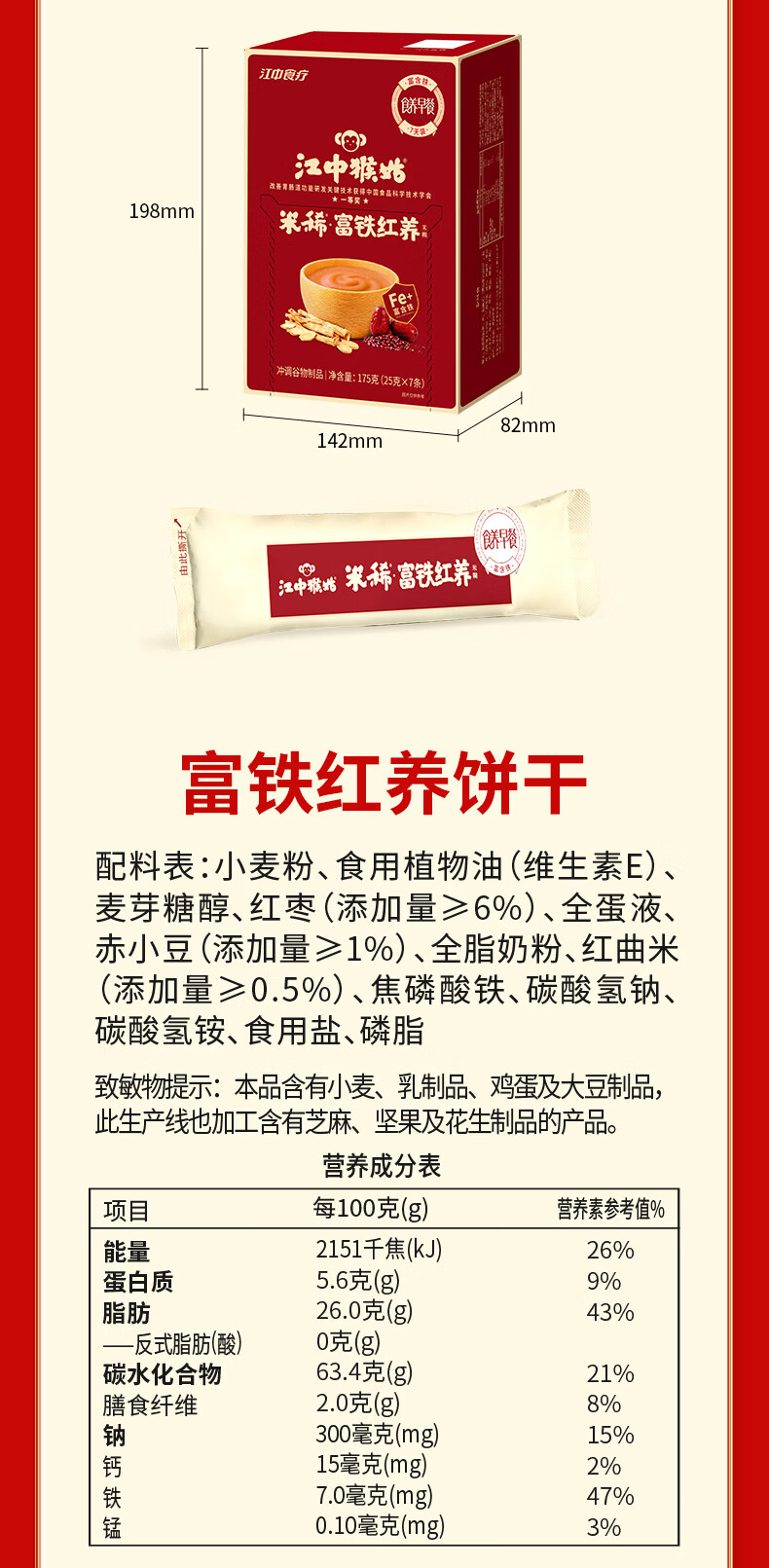 江中猴姑富铁红养米稀饼干早餐补铁营养品滋补新年礼物年货礼盒662g