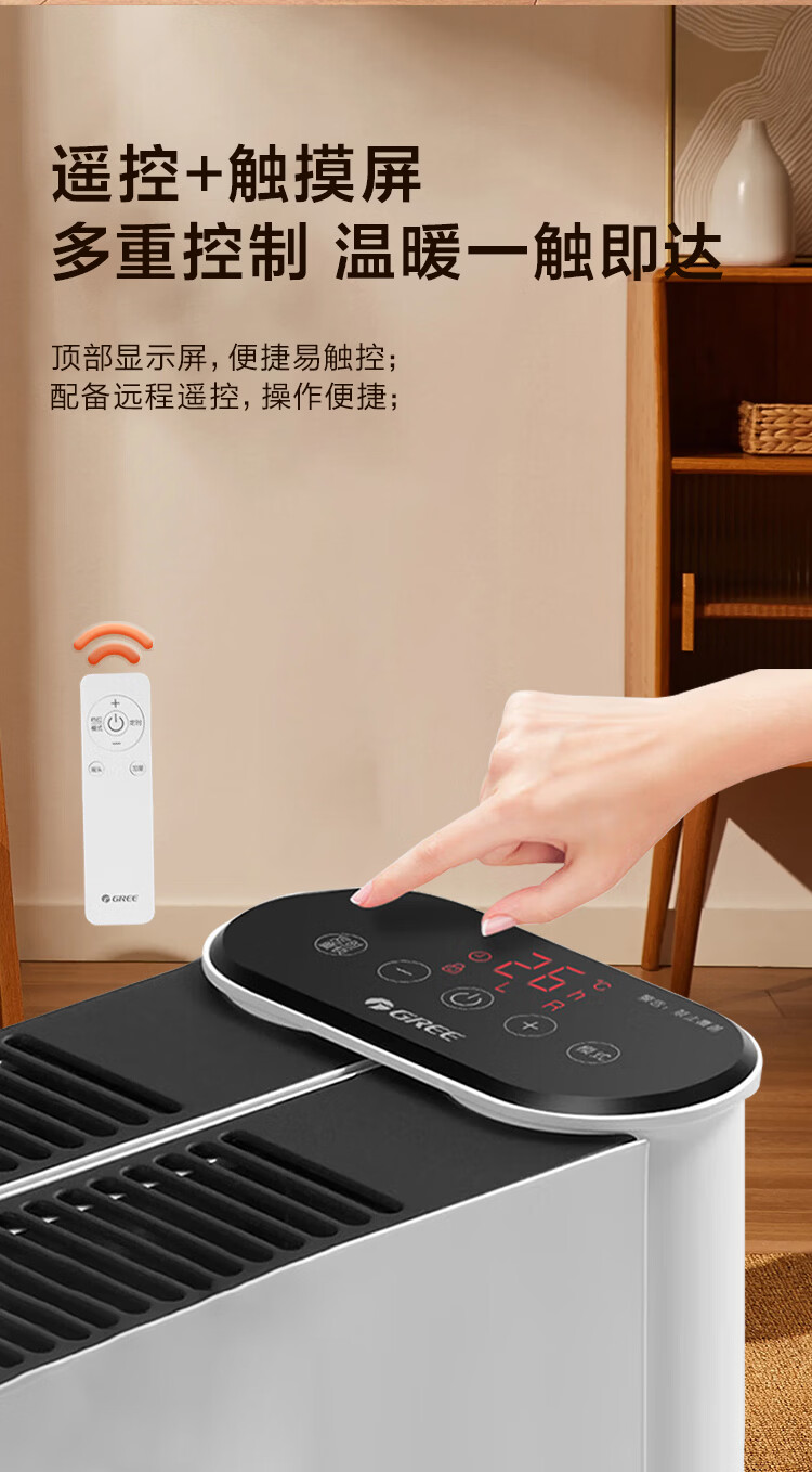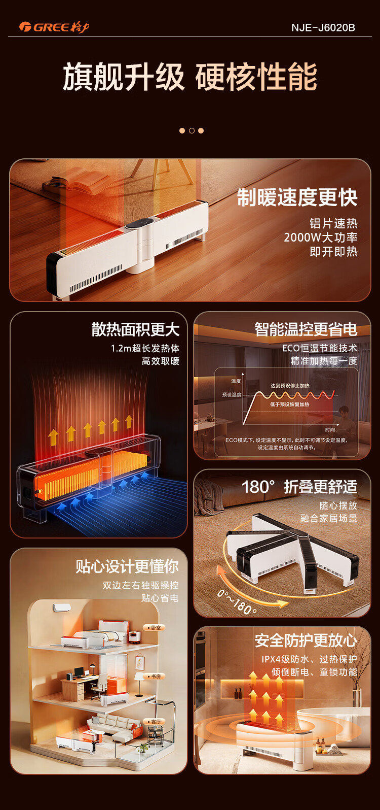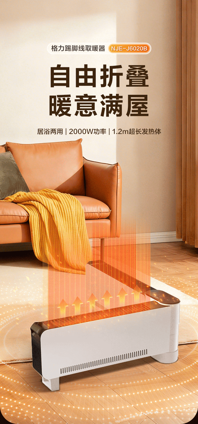 格力(GREE)【180°任意折叠】取暖器新款家用电暖器浴室暖风机暖脚遥控节能省电踢脚线全屋送暖 NJE-J6020B