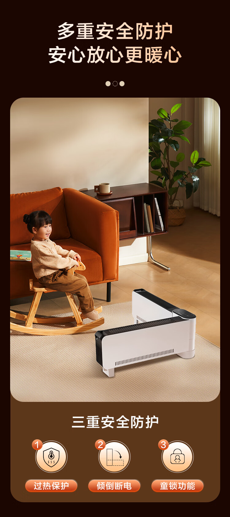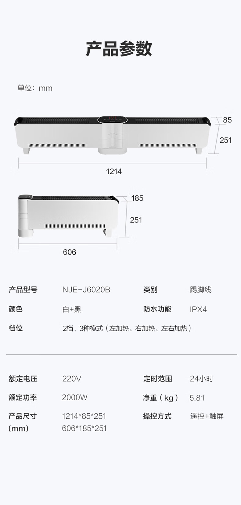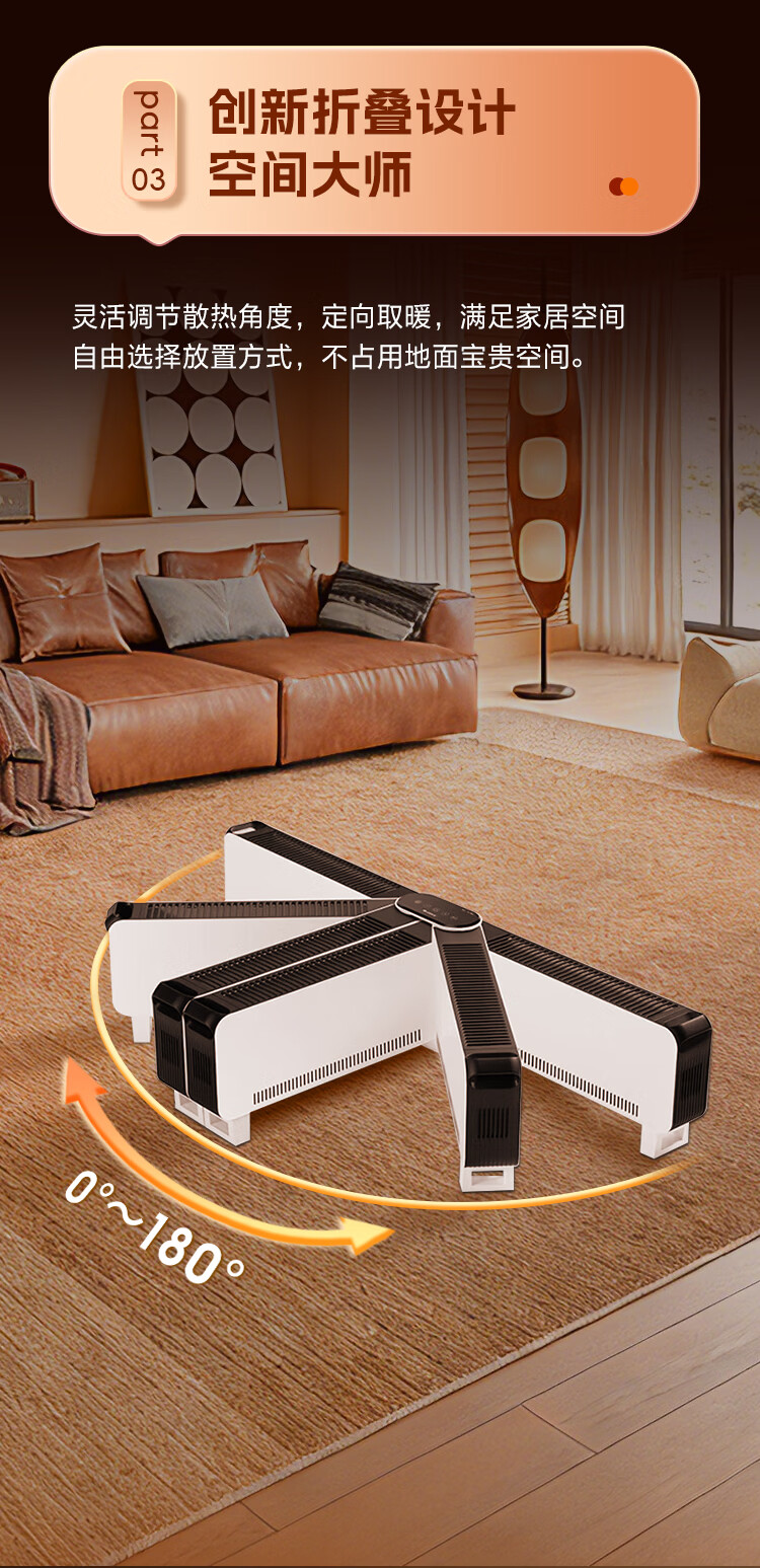 格力(GREE)【180°任意折叠】取暖器新款家用电暖器浴室暖风机暖脚遥控节能省电踢脚线全屋送暖 NJE-J6020B
