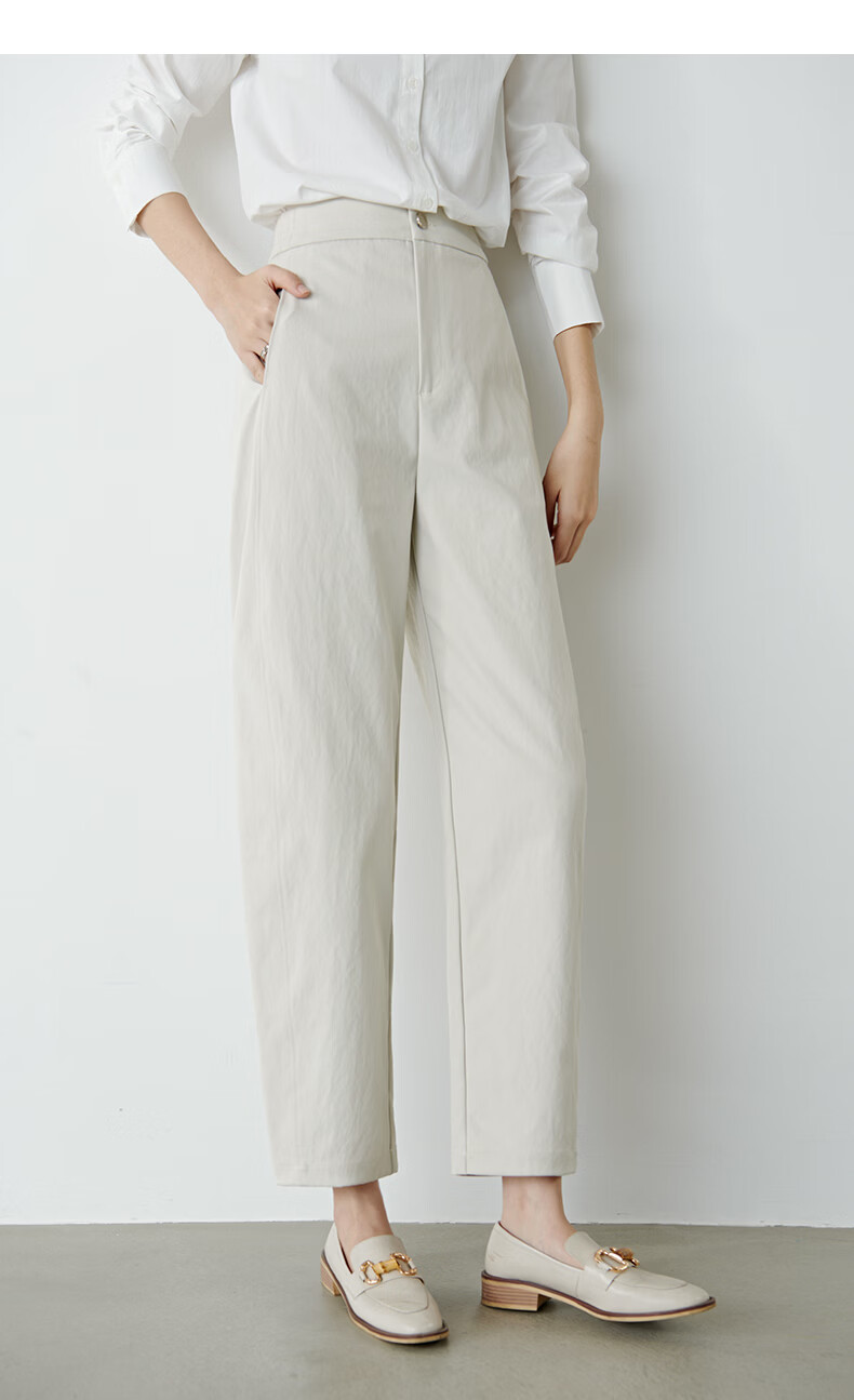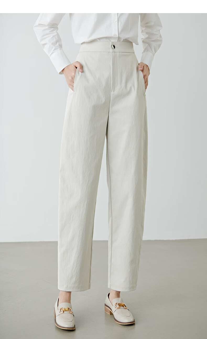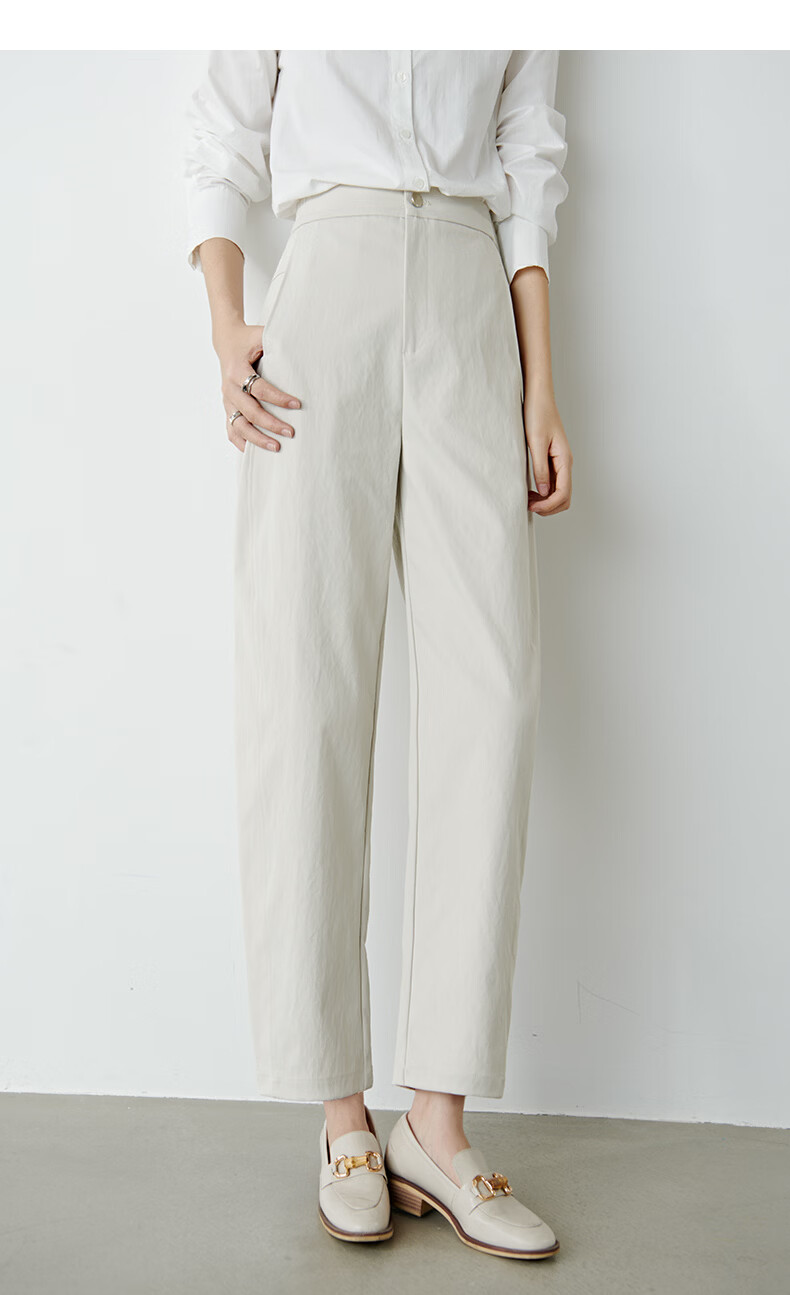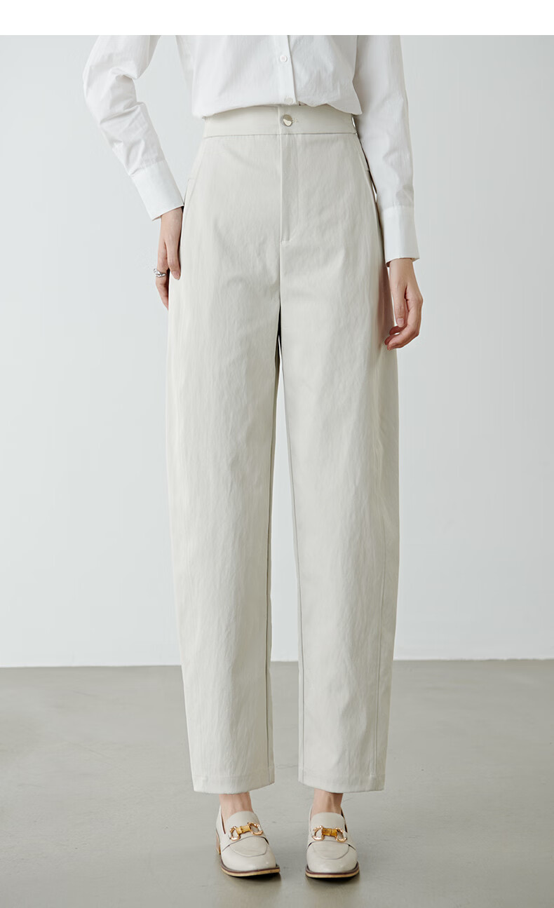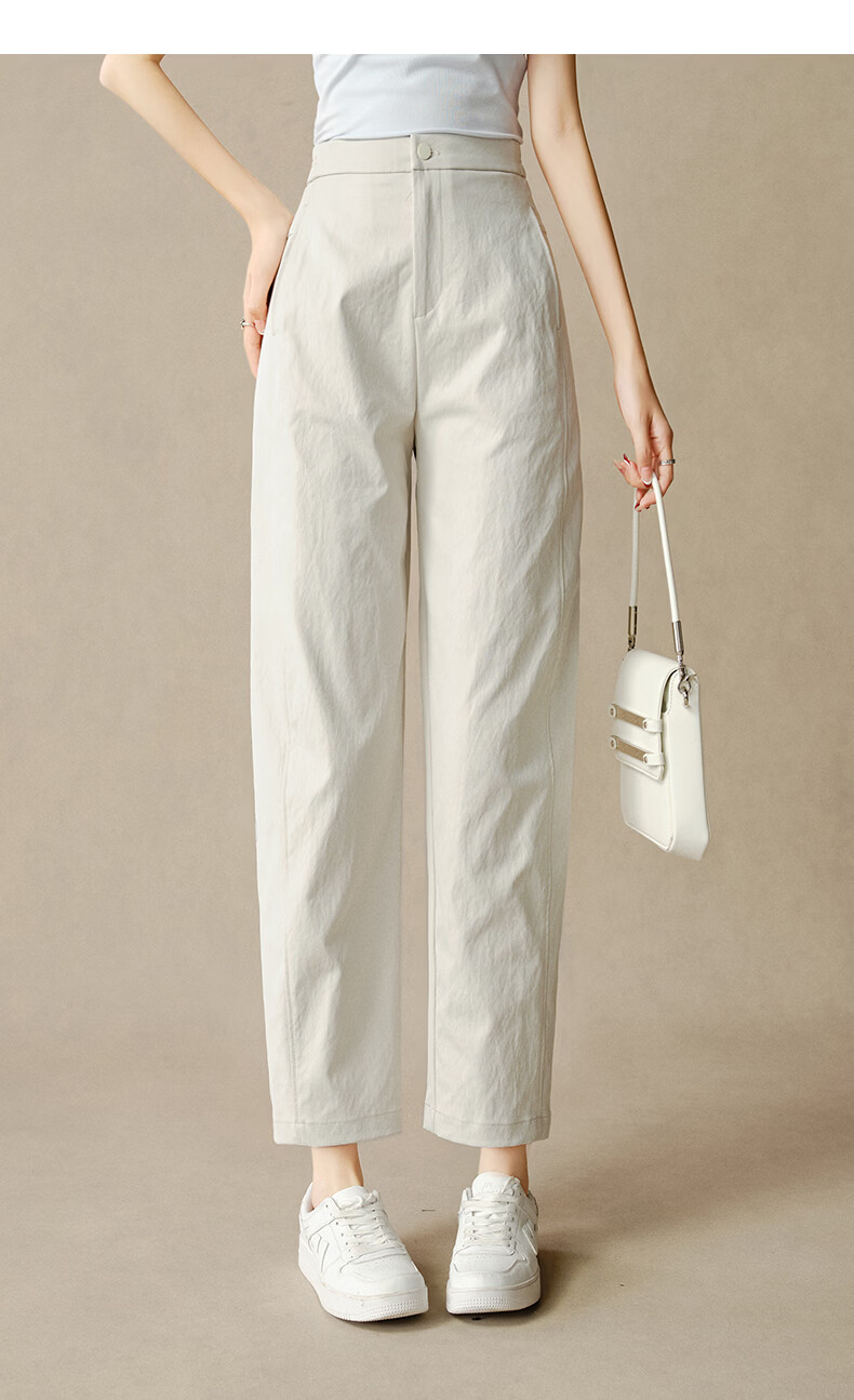 晚白【新品】2026春款时尚裤子半松紧显瘦舒适休闲镰刀裤女 米灰色 29