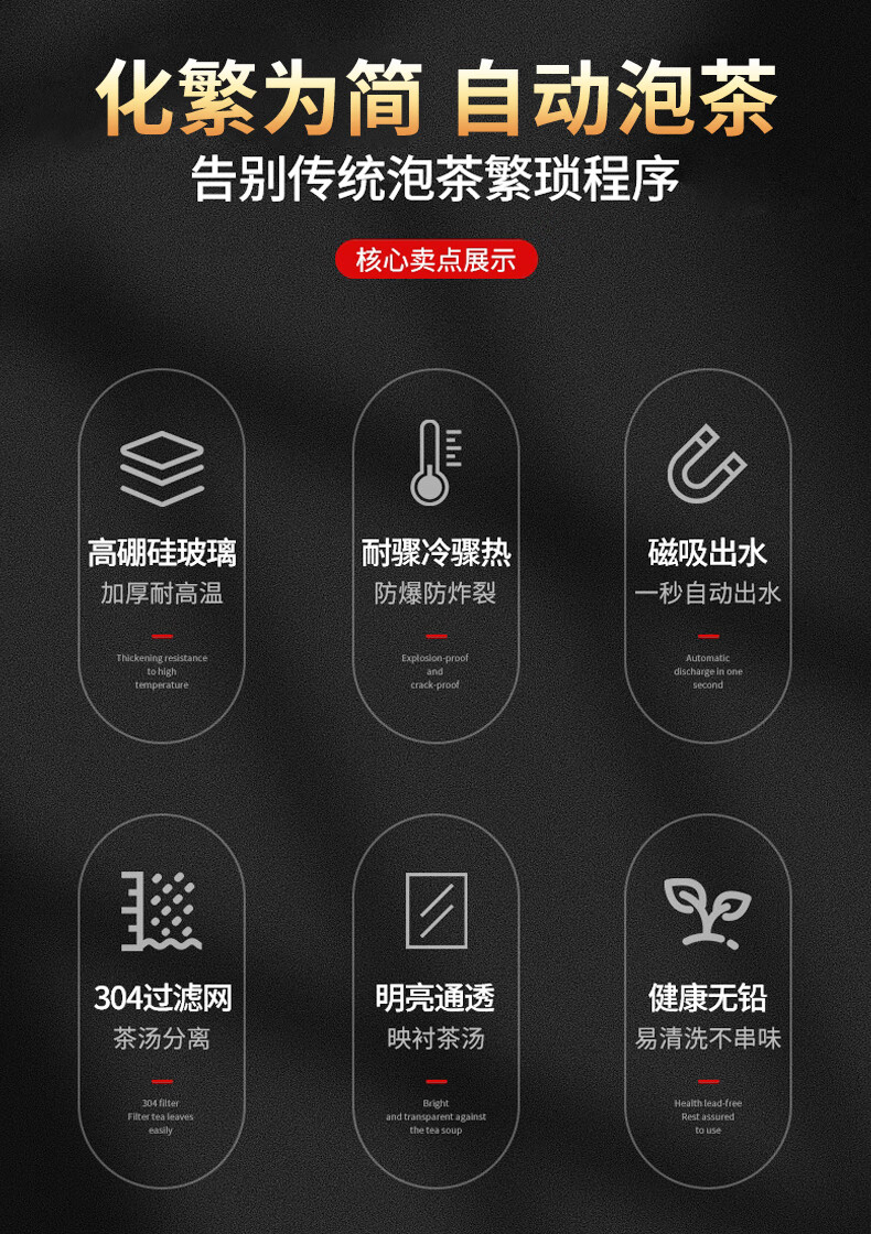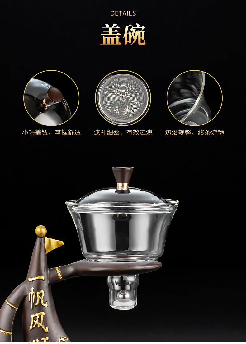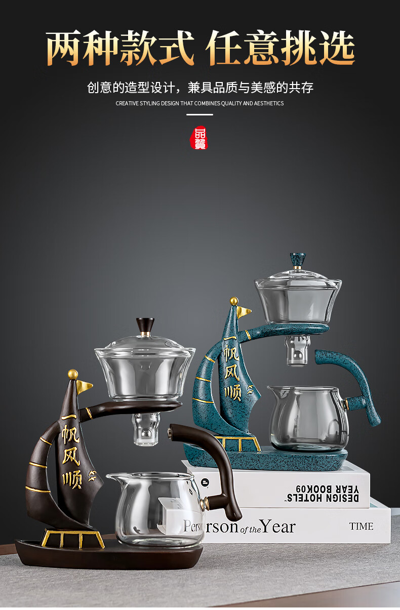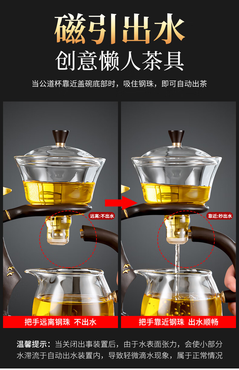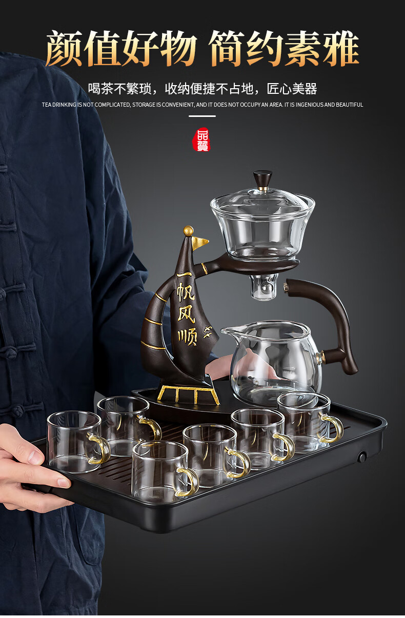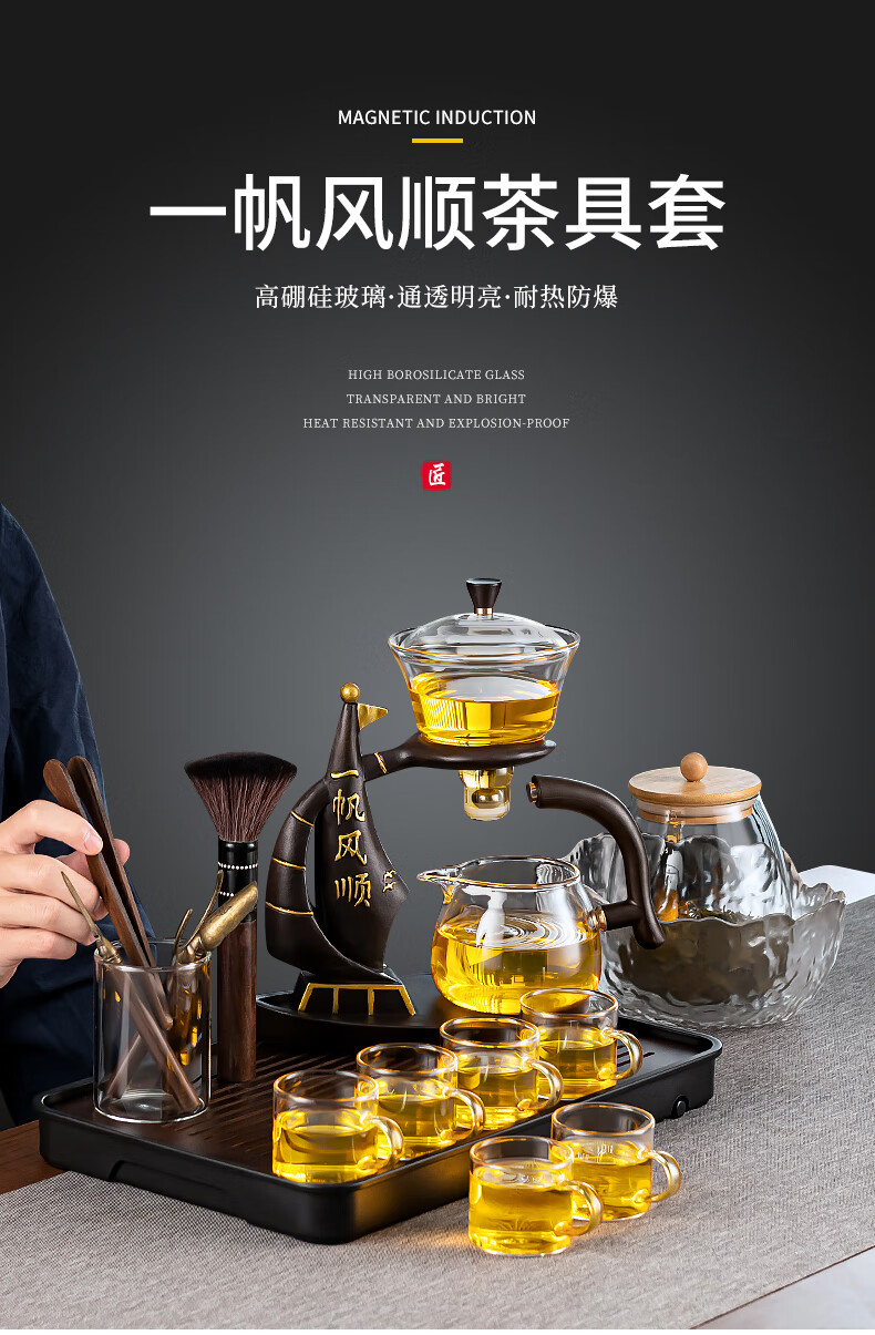 心茧懒人玻璃自动茶具套装家用防烫功夫泡茶神器整套磁吸三件套自研款 自动(一帆棕)六金+罐道长琴胡白