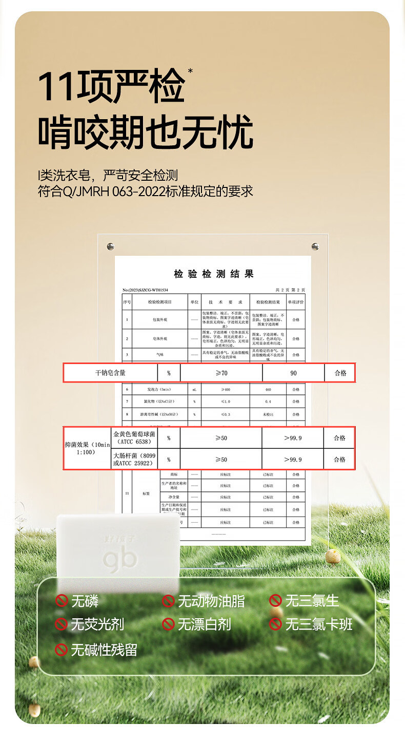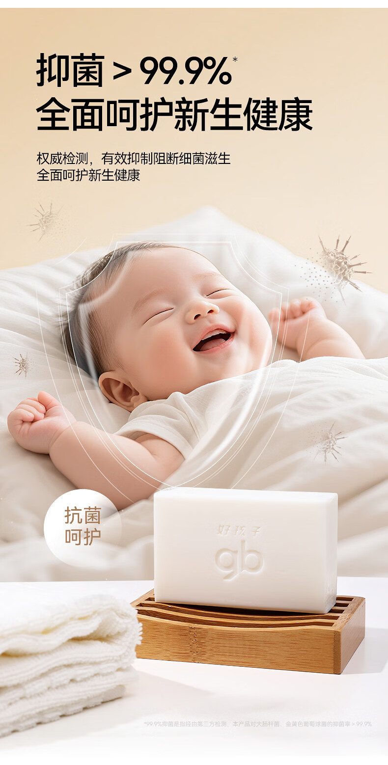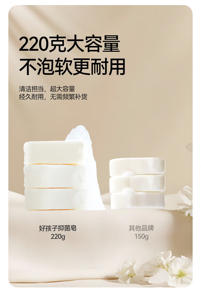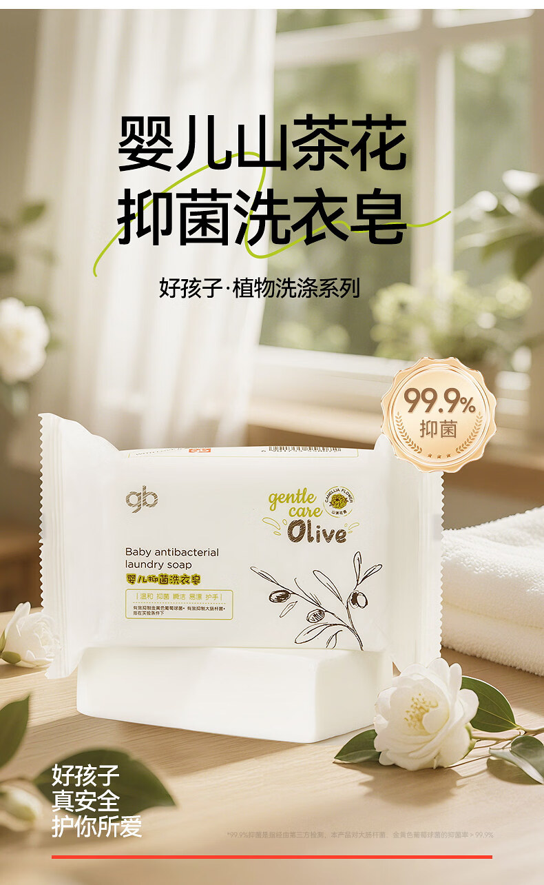 好孩子(gb)好孩子婴儿洗衣皂220G3去渍新生儿童洗衣服肥皂宝宝尿布皂 抑菌洗衣皂加量款【220g*6块】山茶花香