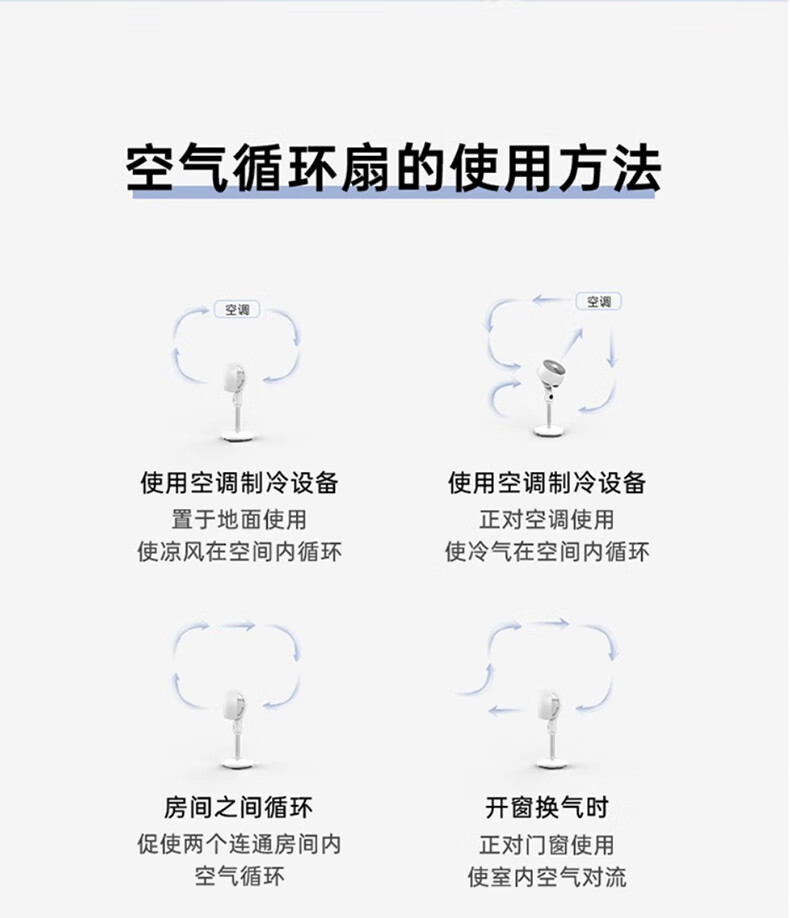 艾美特风扇踏青放价空气循环扇家用电风扇低噪涡轮换气扇卧室办公台立两用落地扇立体送风电扇 【D款】白色遥控款-机头加大