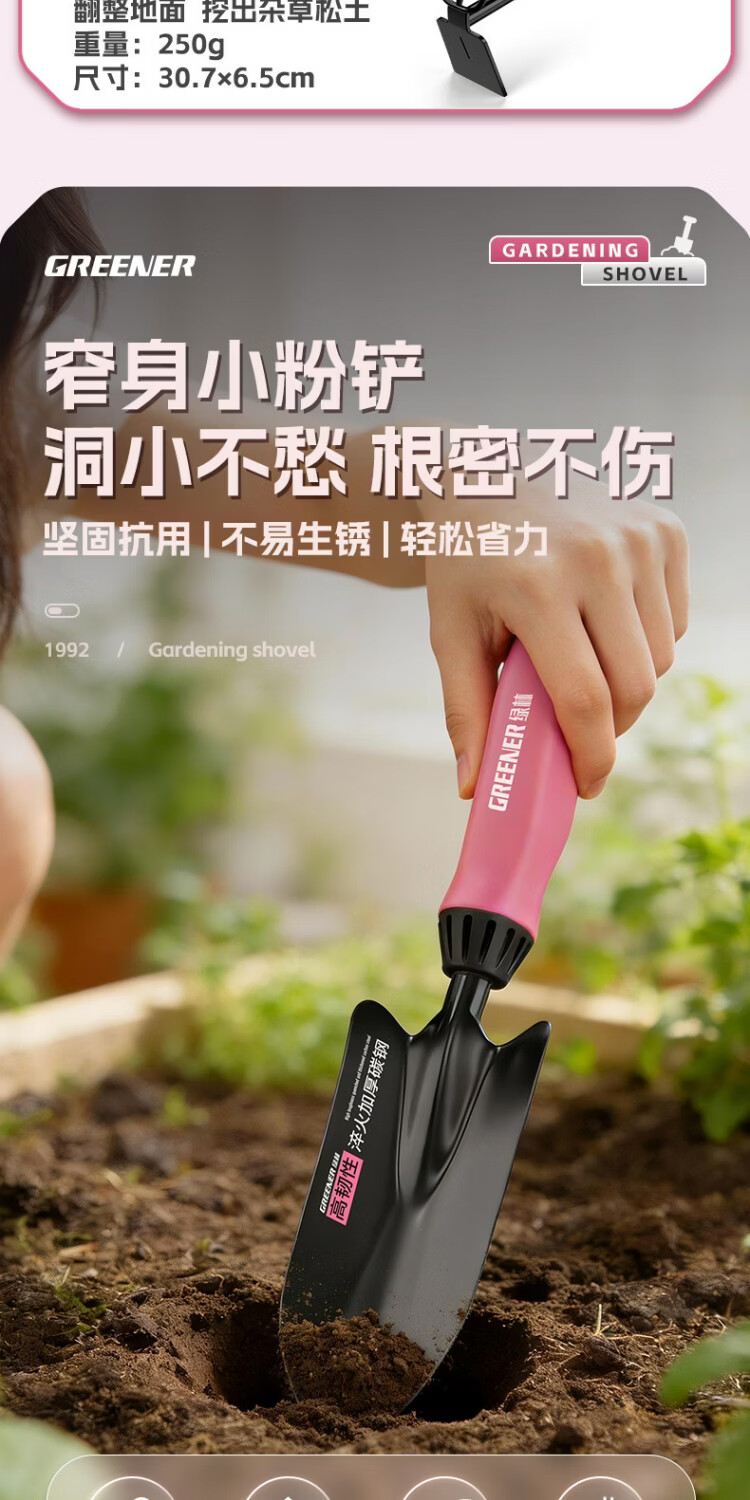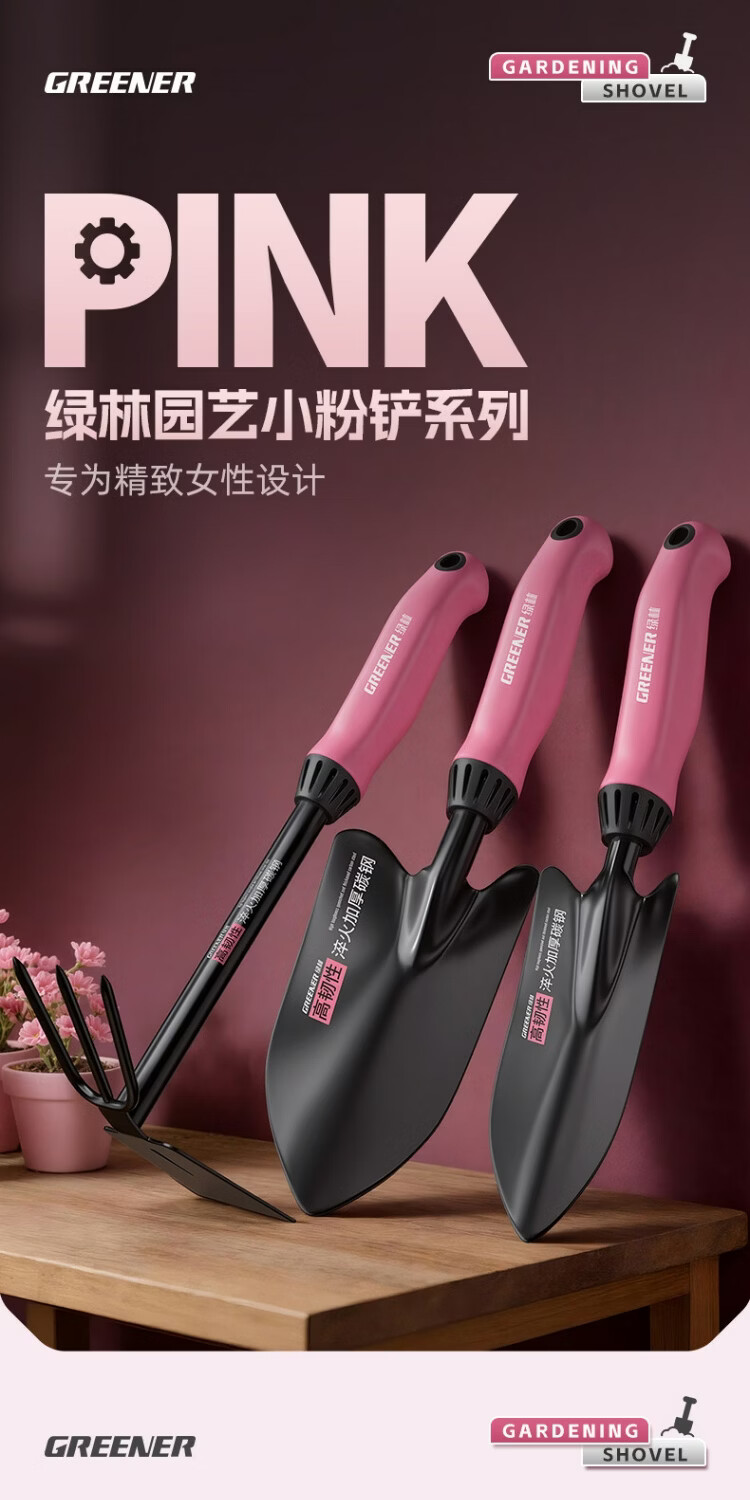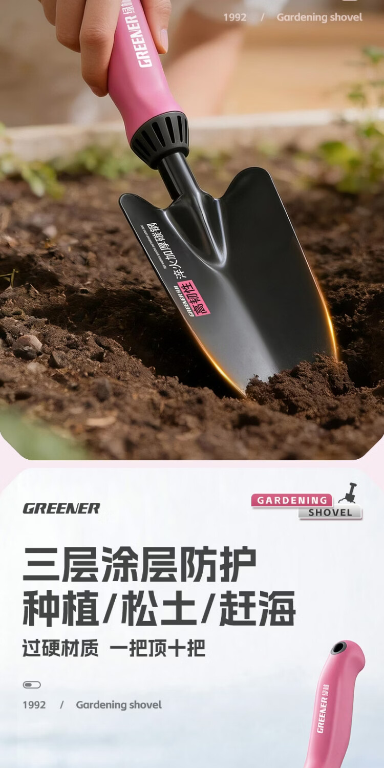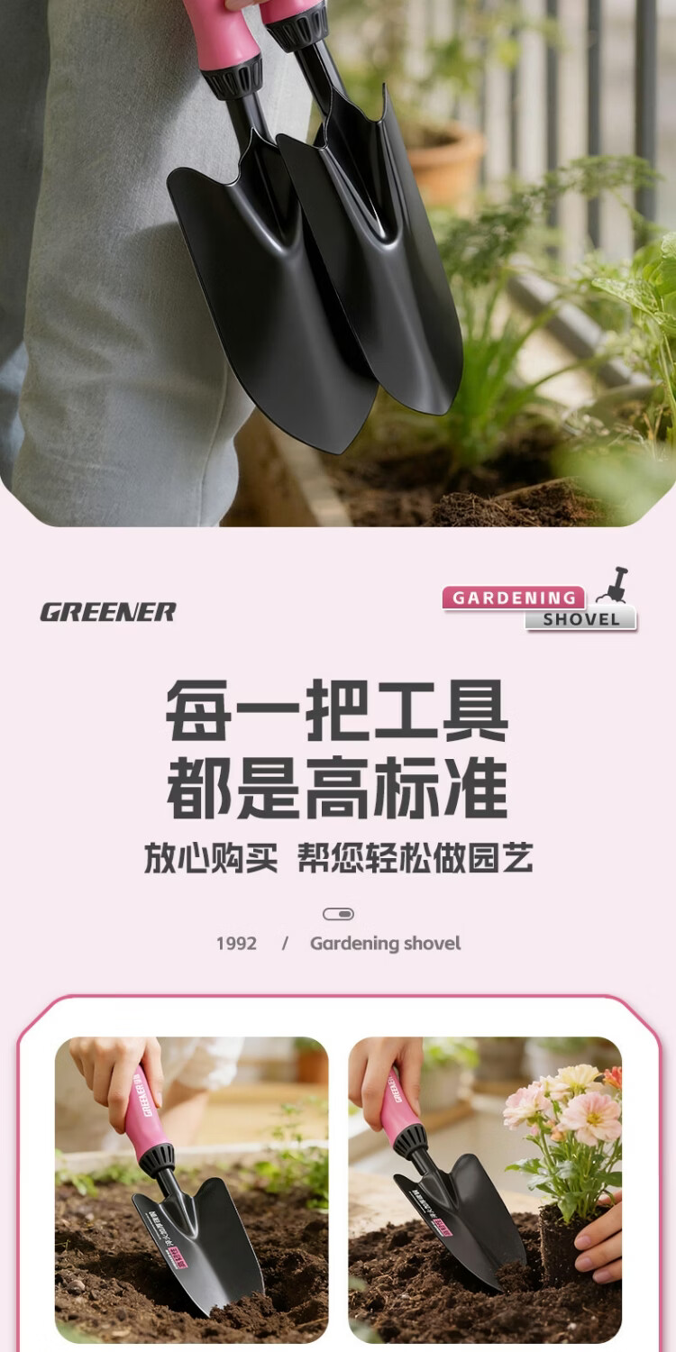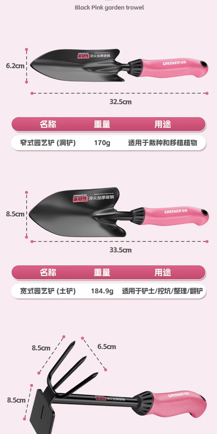 绿林园艺工具种花赶海神器种菜栽养花小铲子多肉花铲户外铲土铁铲 【BLACK PINK】-元气小粉铲(土铲)