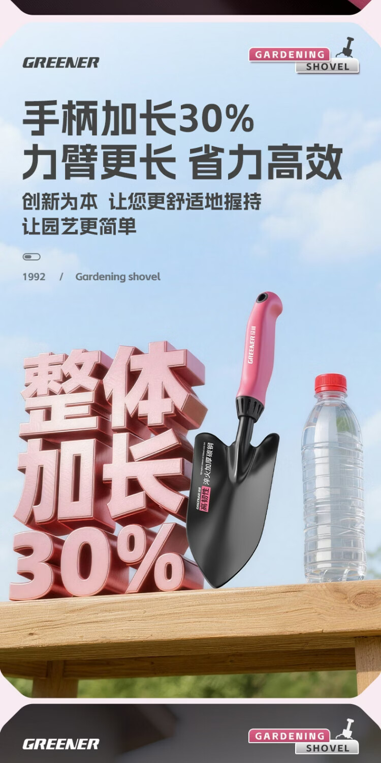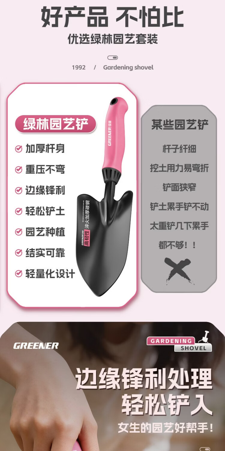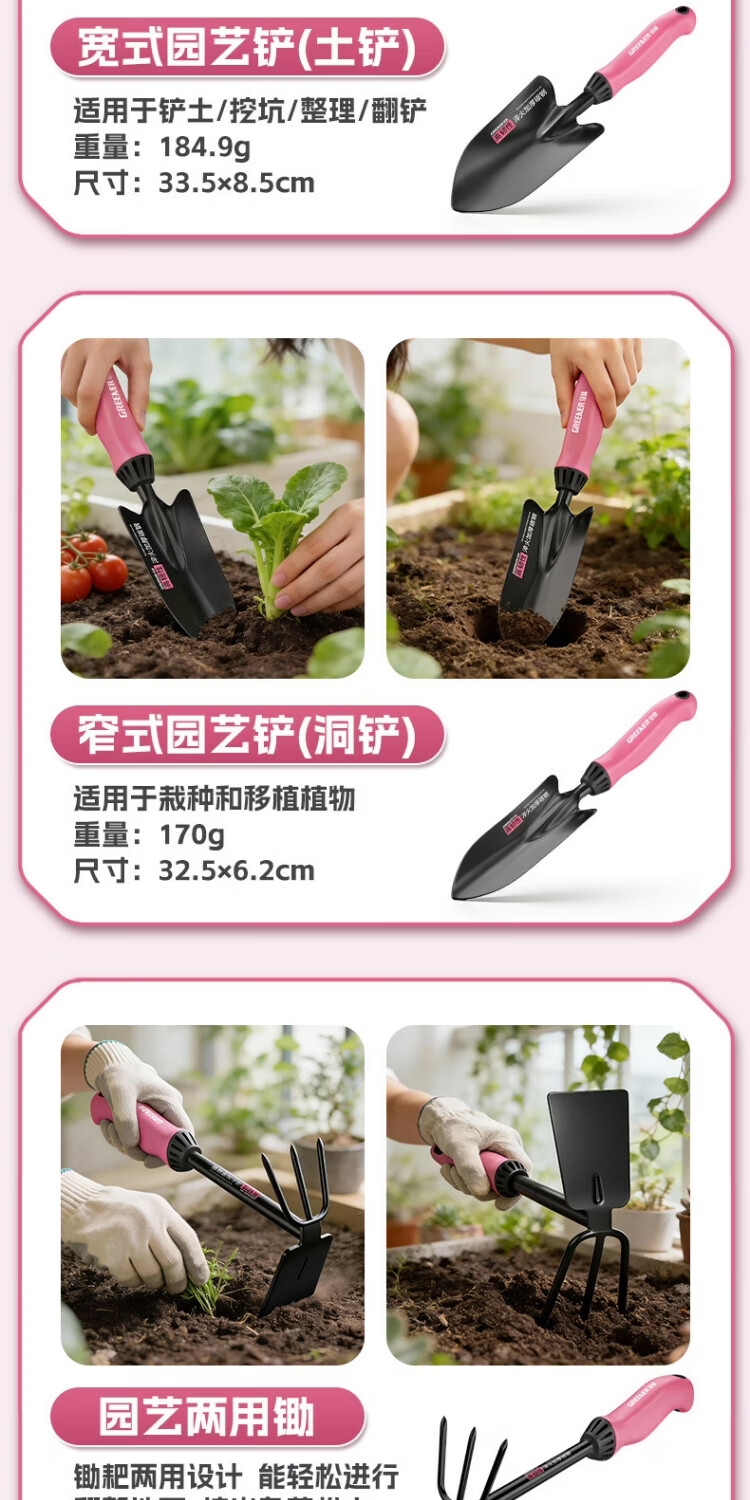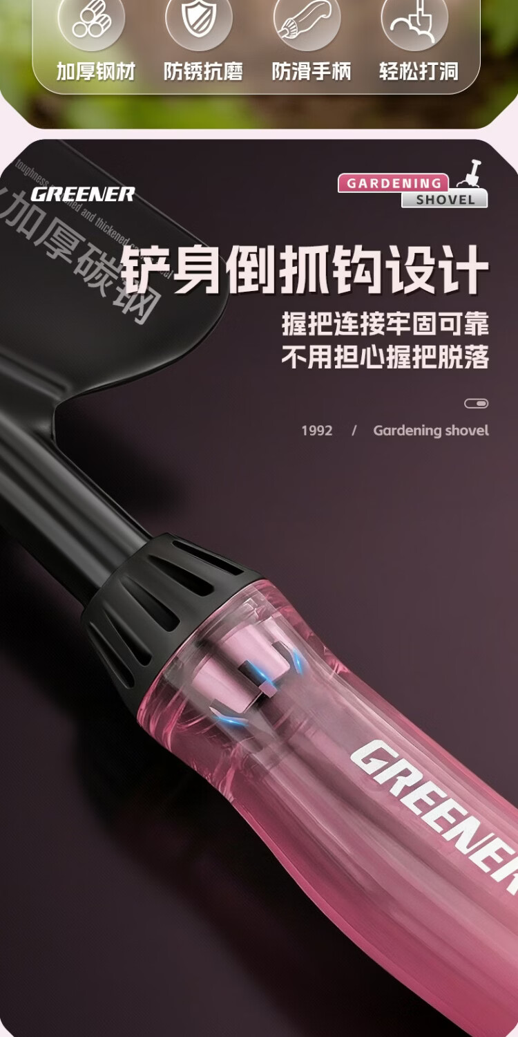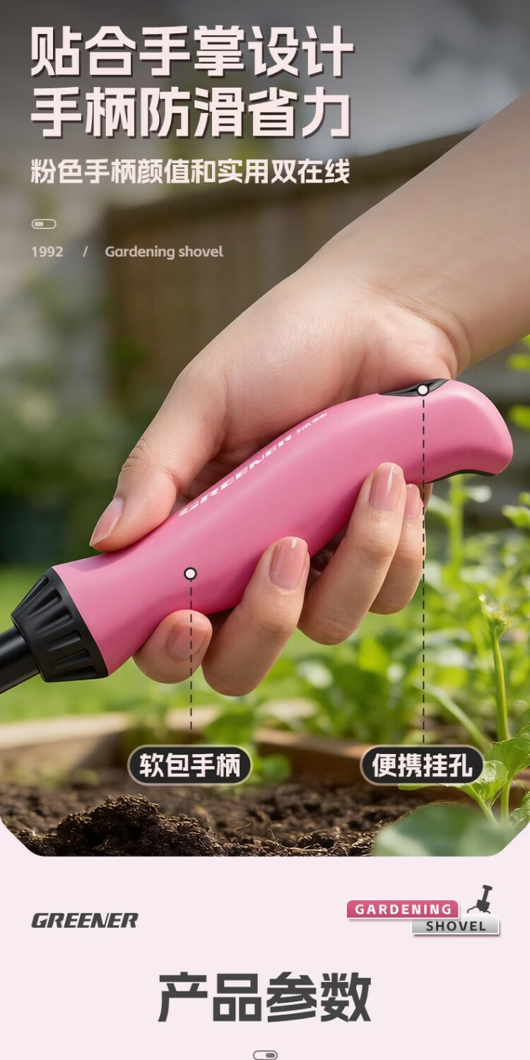 绿林园艺工具种花赶海神器种菜栽养花小铲子多肉花铲户外铲土铁铲 【BLACK PINK】-元气小粉铲(土铲)