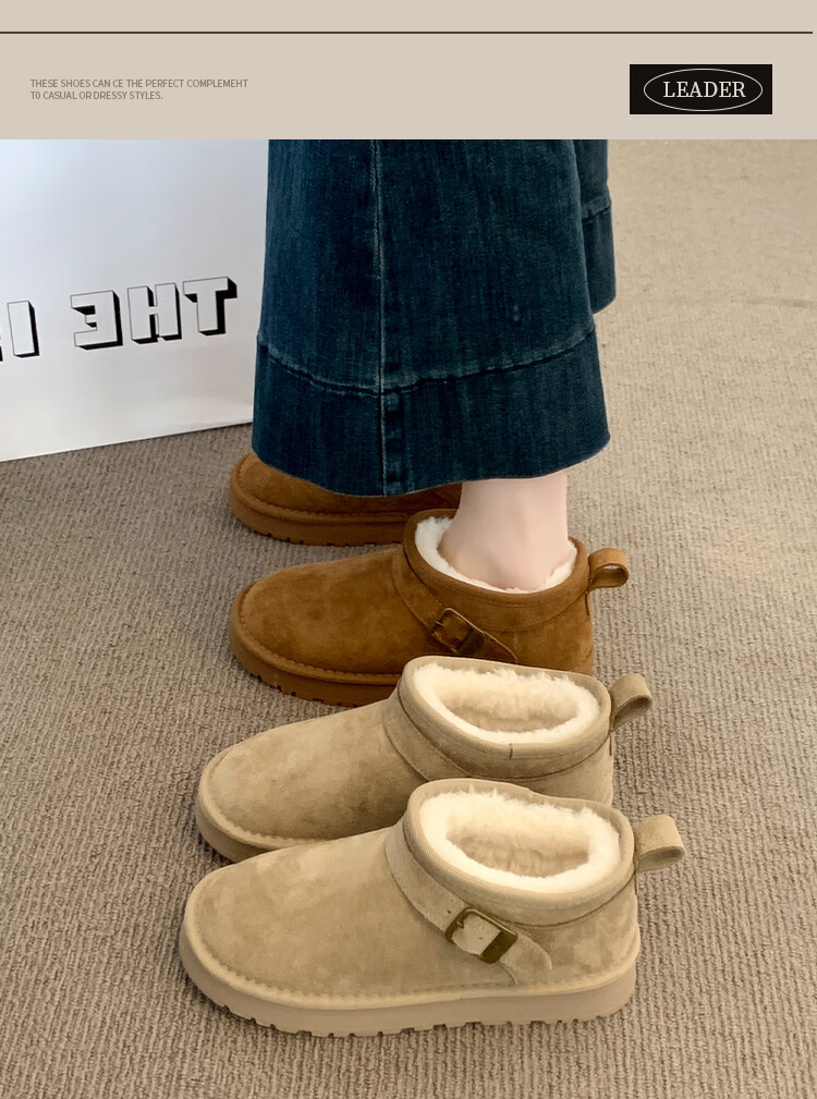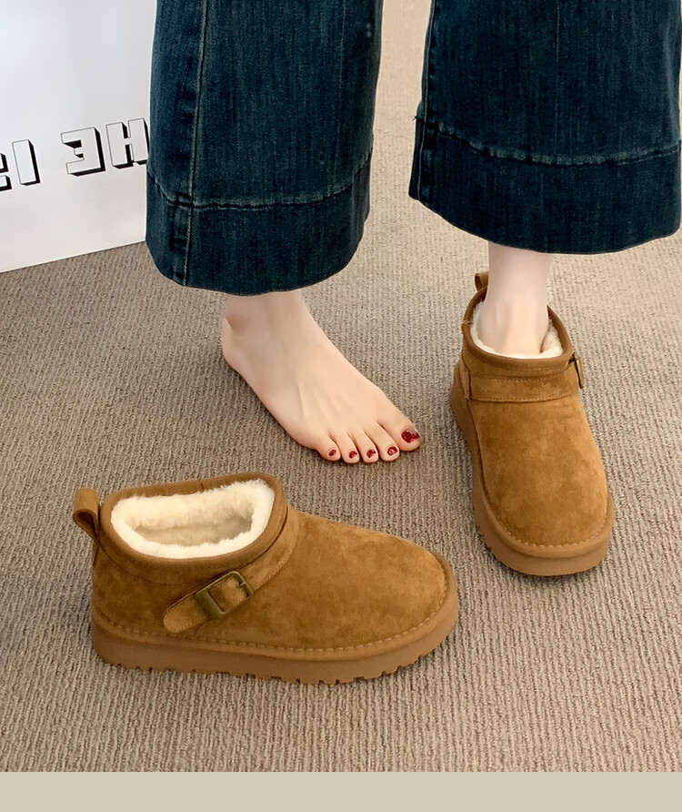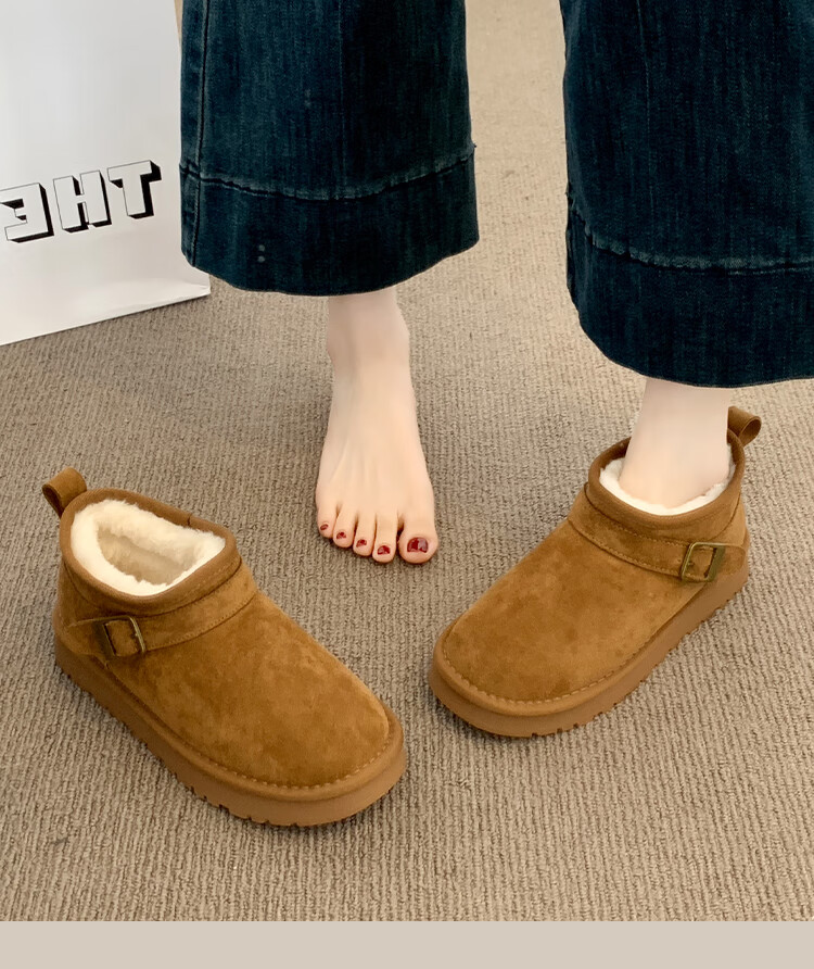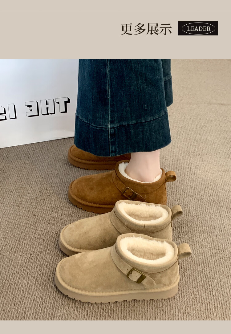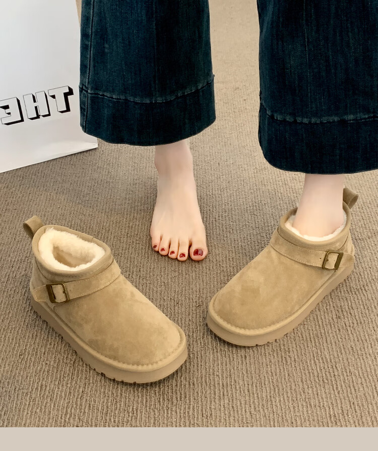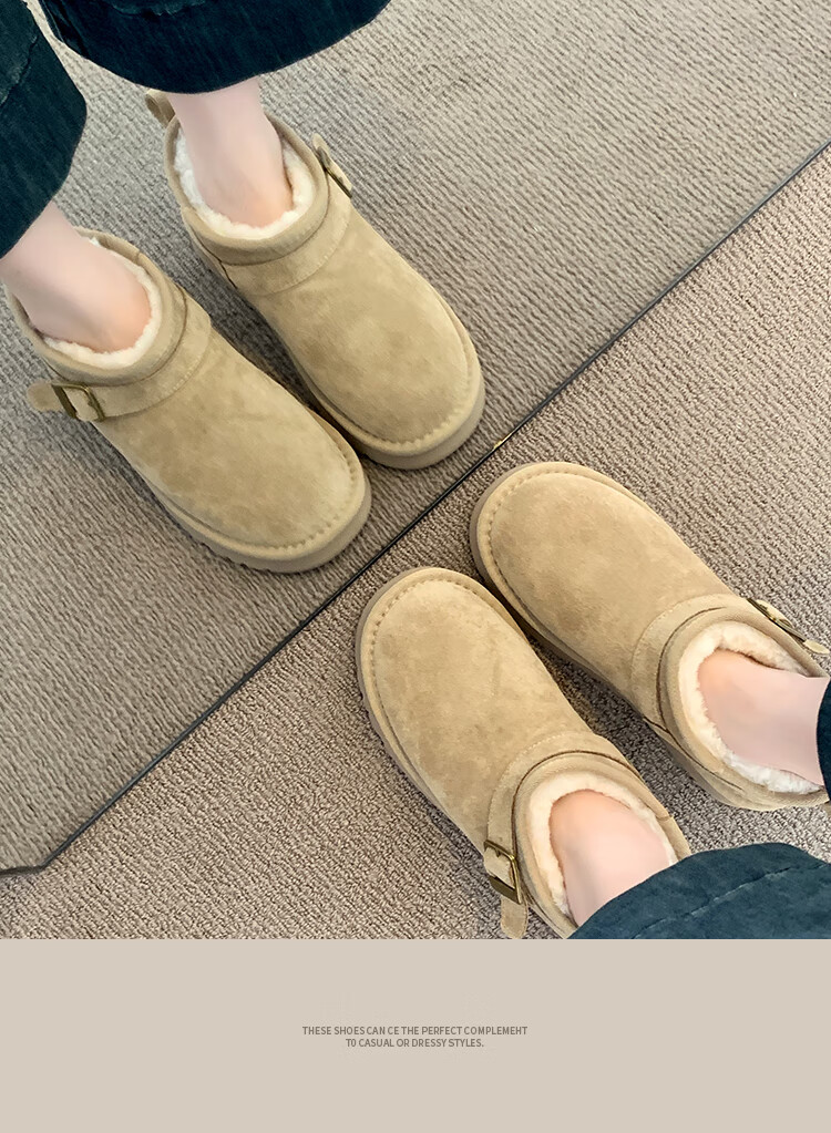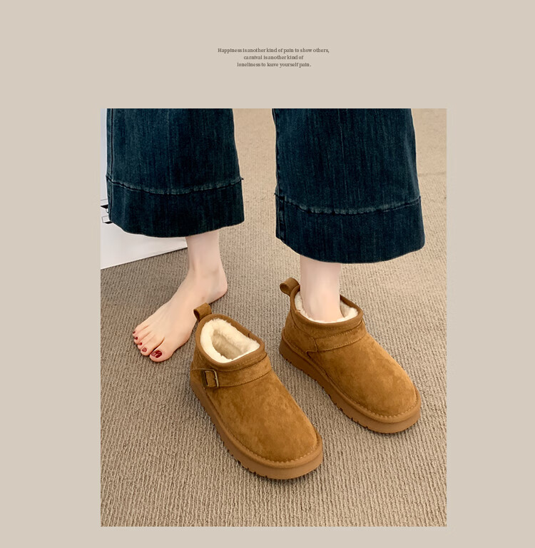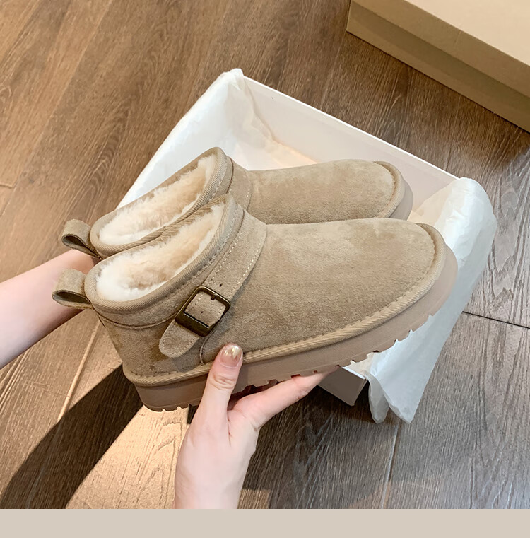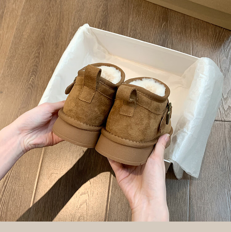 稻草人(MEXICAN)厚底雪地靴女款2026新款冬季毛毛勃肯鞋加绒加厚短靴子东北大棉鞋 驼色 35