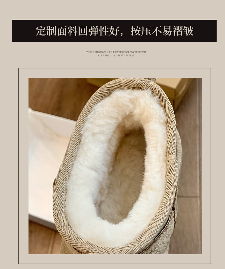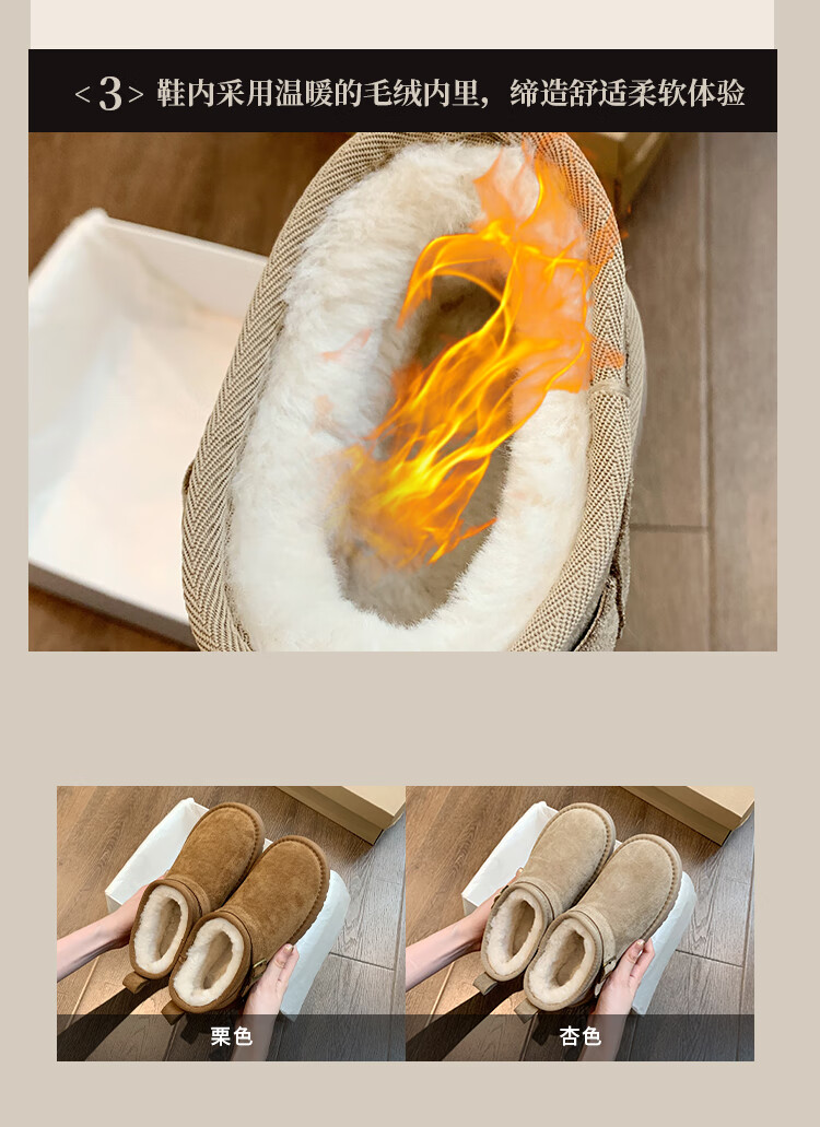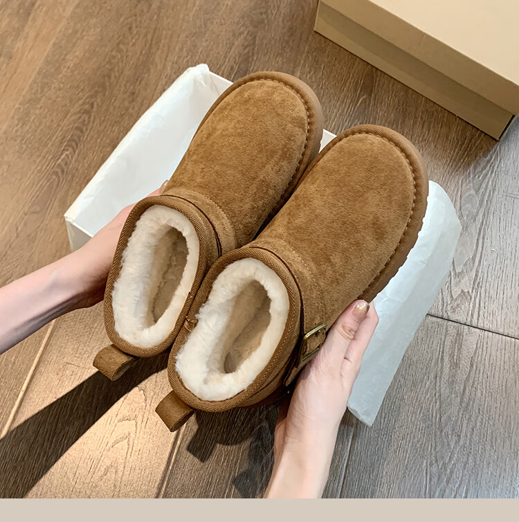 朴西雪地靴女外穿保暖增高厚底加厚棉靴防水防滑包根毛绒棉鞋冬天 驼色 37-38 【商超同款*朴西品牌】
