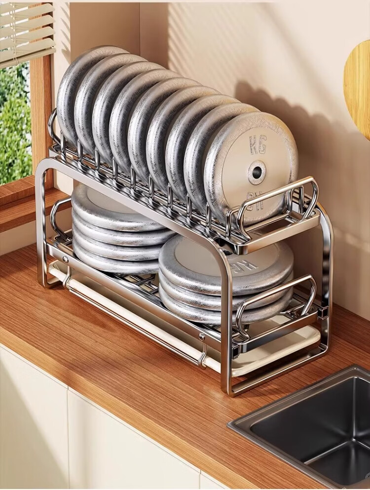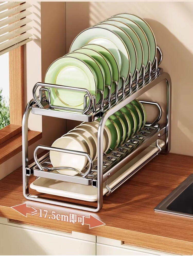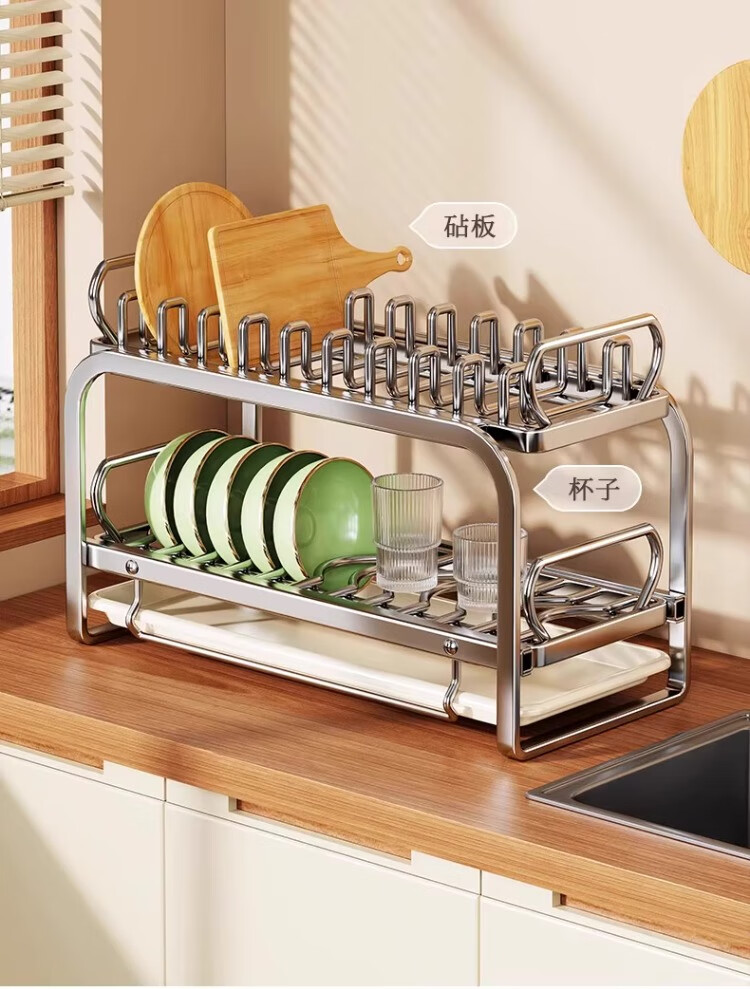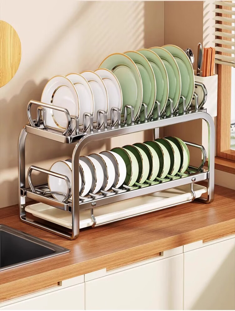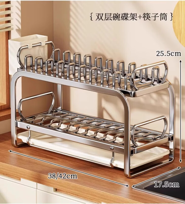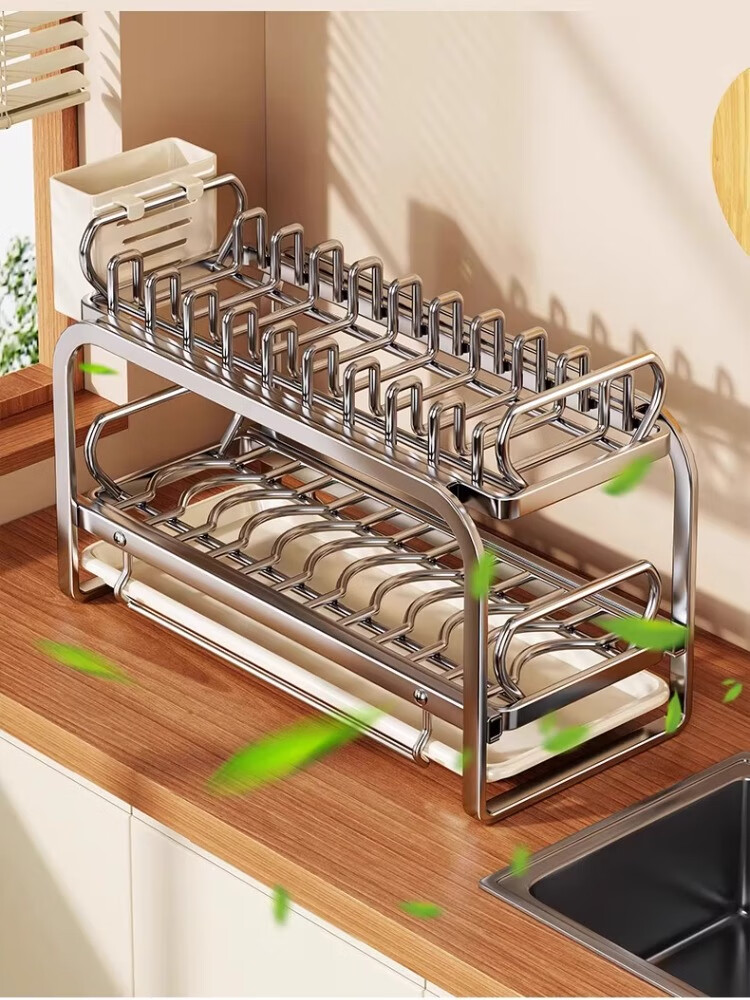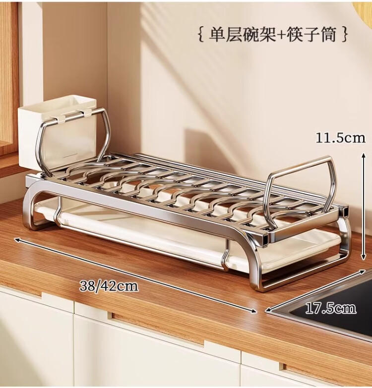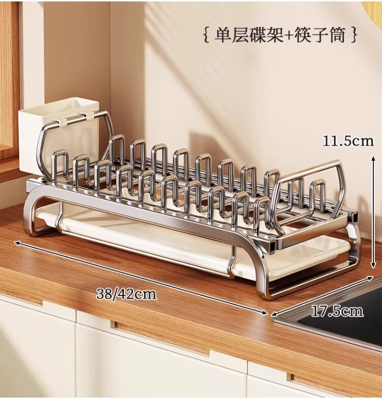 尔思家碗碟沥水架不锈钢碗盘架厨房置物架碗筷盘子台面放碗沥碗架收纳架 大号抽拉款单层碟架+筷子筒