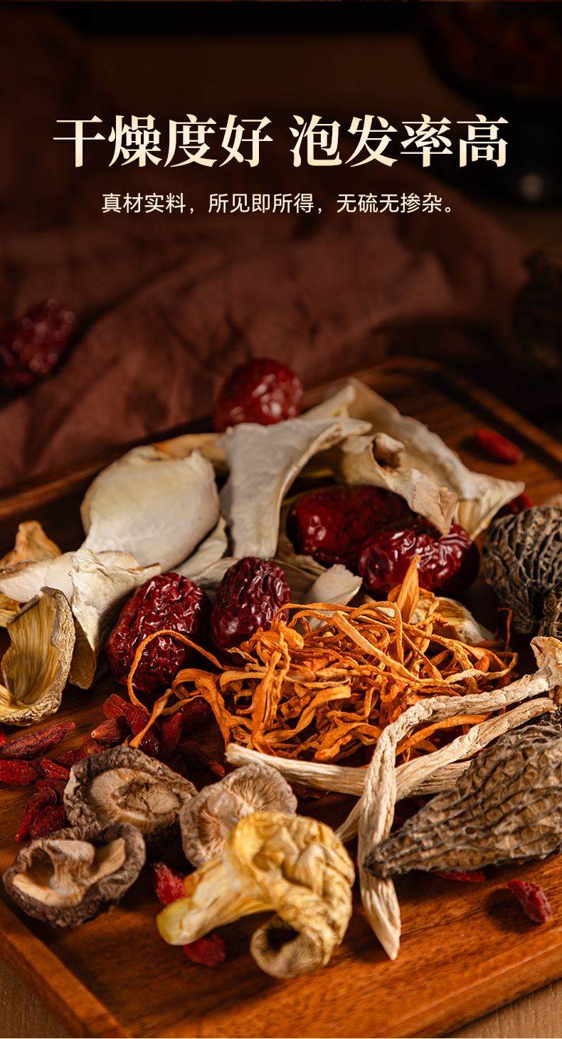 张太和七彩菌汤包 煲汤炖鸡食材材料 蛹虫草羊肚菌杏鲍菇菌菇汤火锅食材 十福贺岁菌菇礼盒(50g*10袋)共 500g*1盒