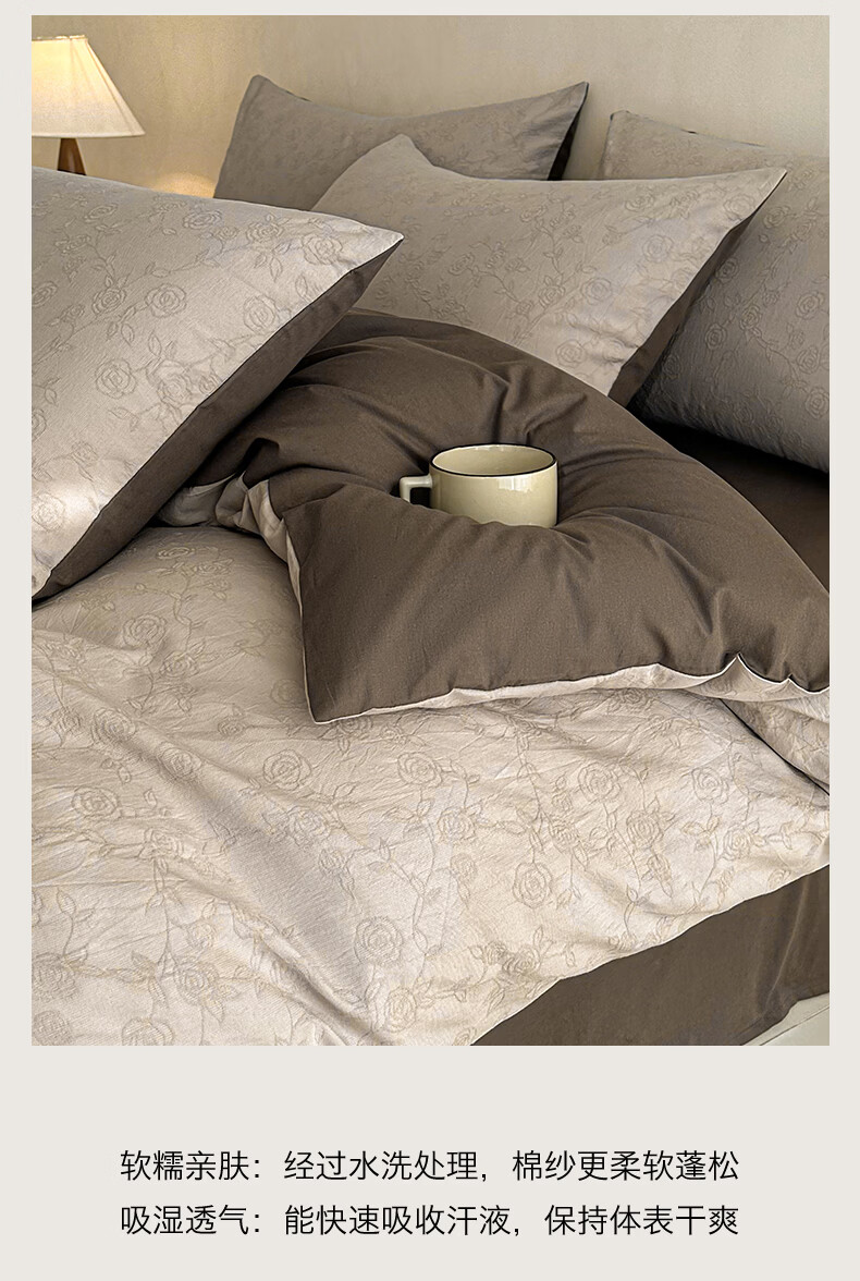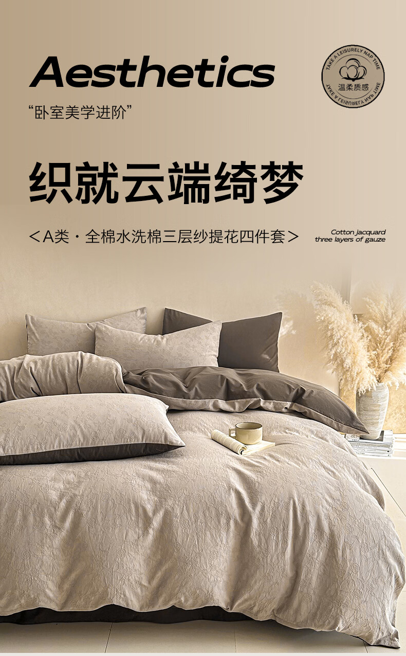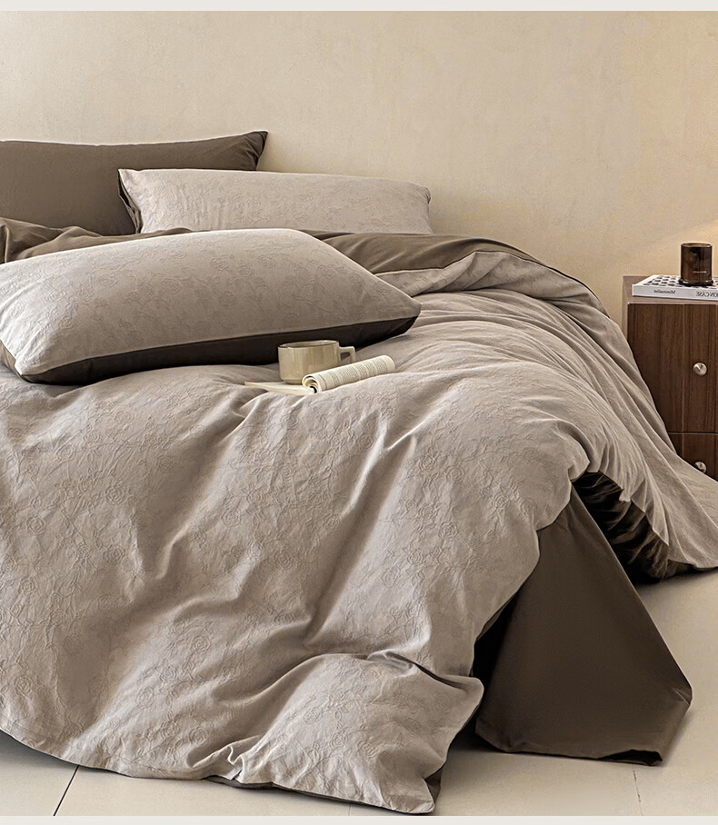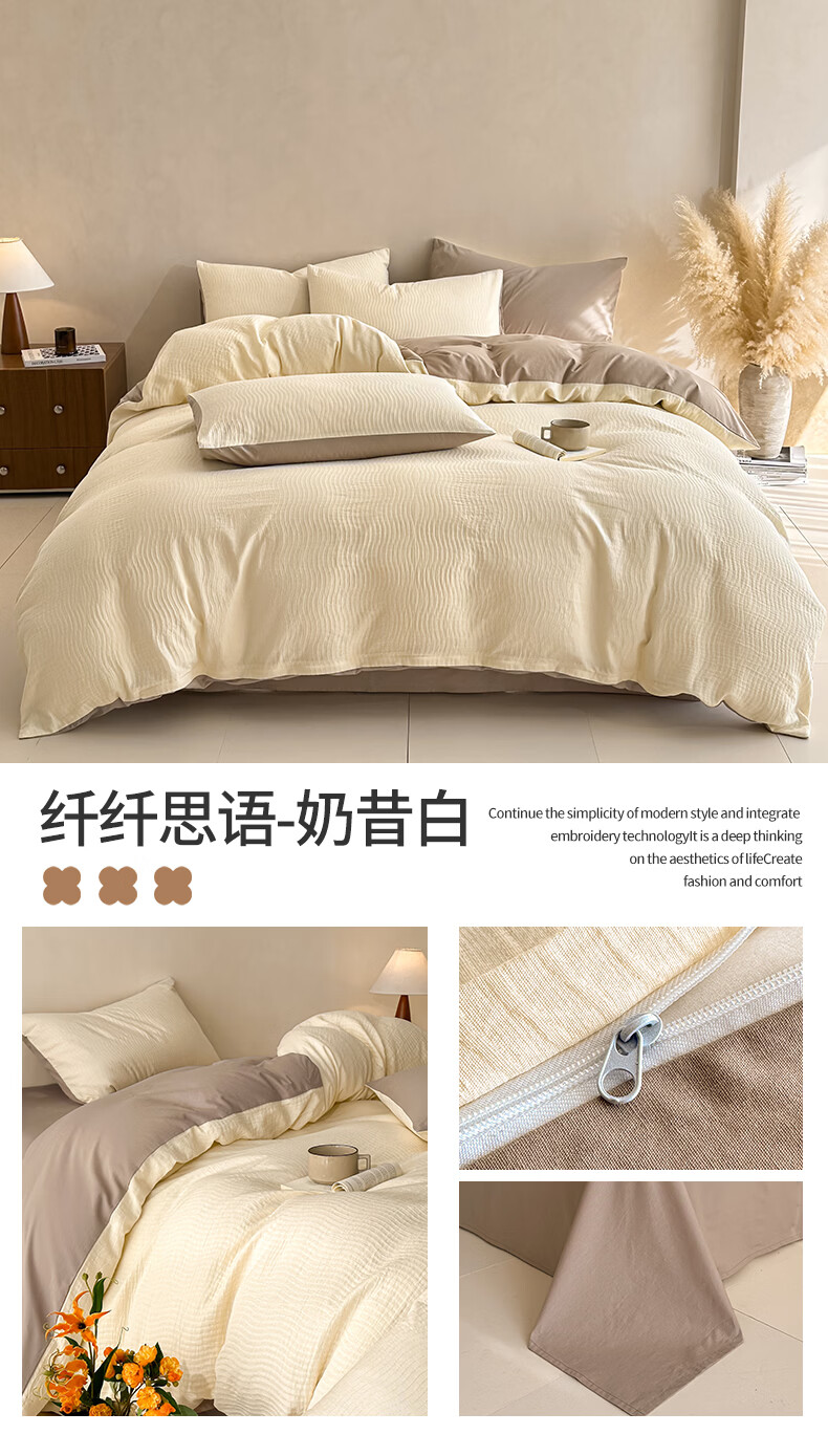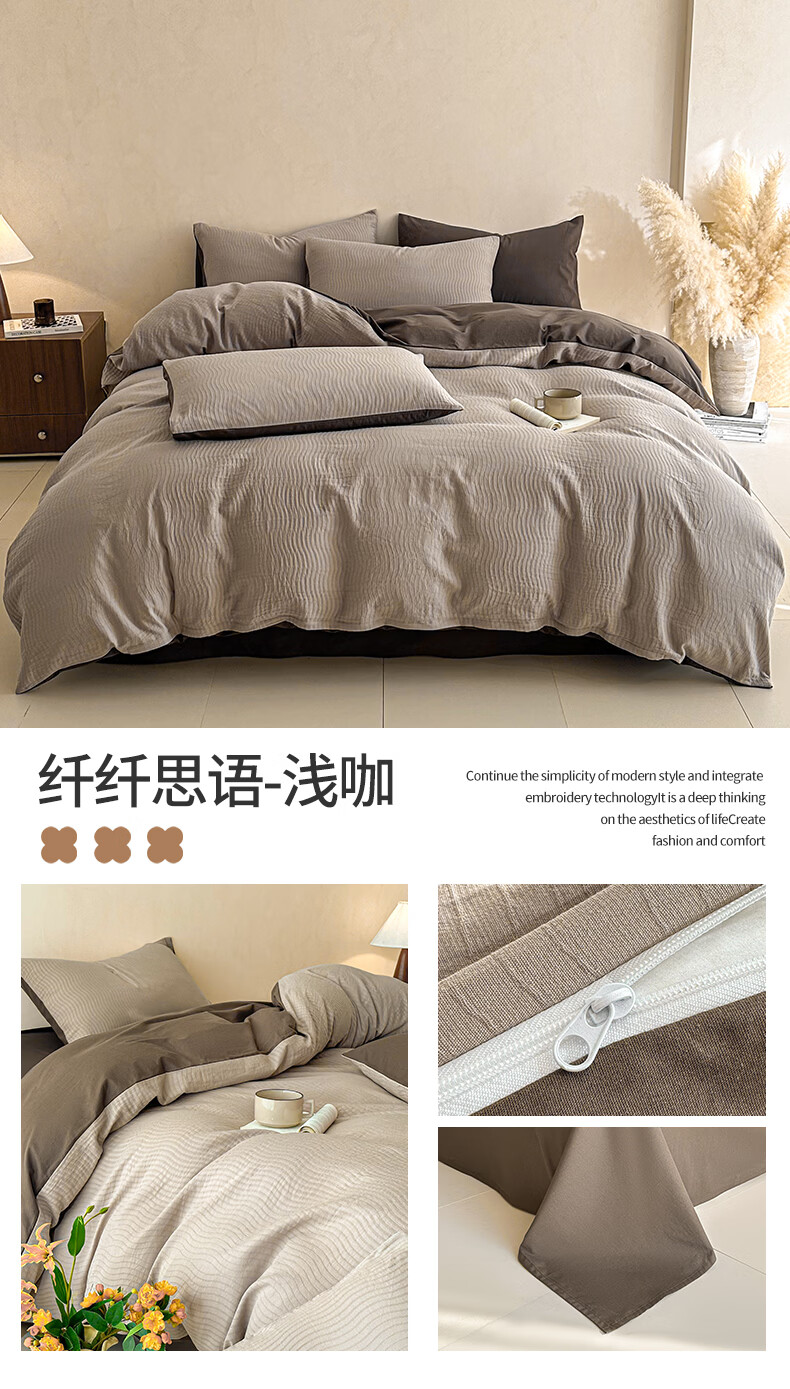 无印良品A类全棉纯棉床上四件套高级轻奢2026新款床单被套罩四季通用裸睡4 半夏-白咖 【100%全棉面料 精美提花工艺】 1.8m 床单款 四件套-被套200x230cm