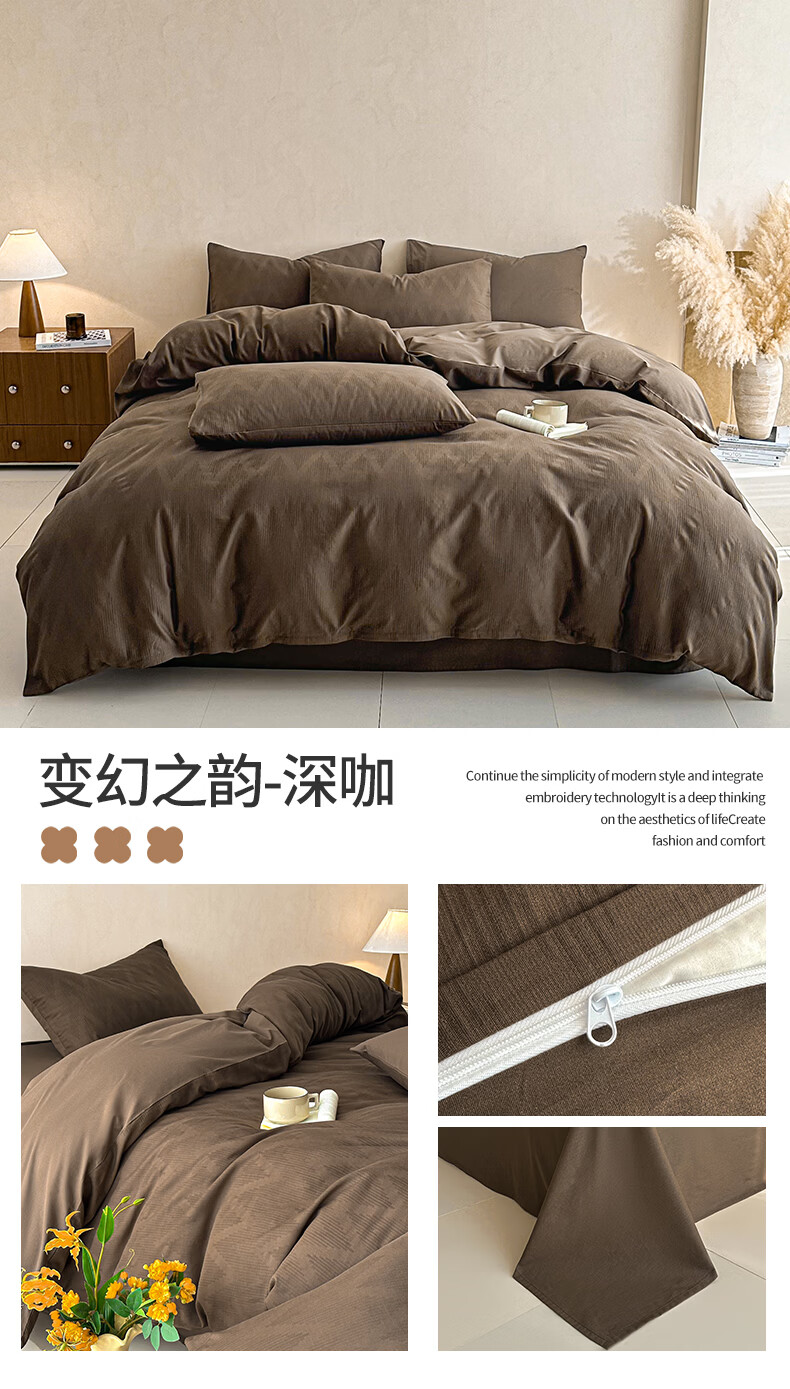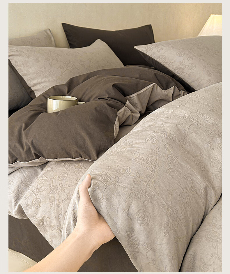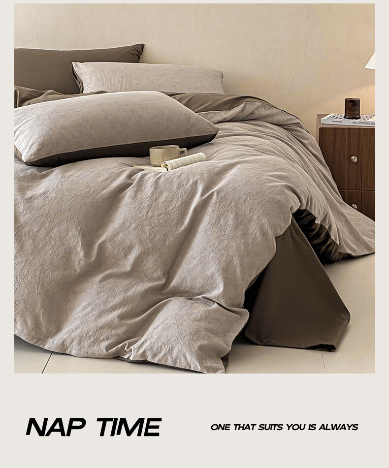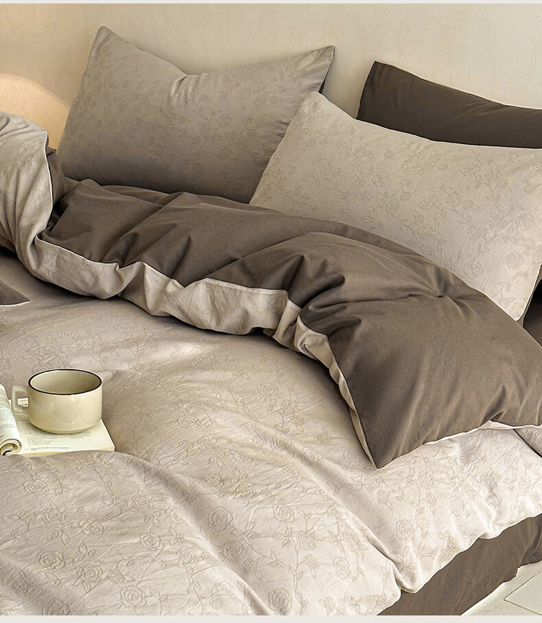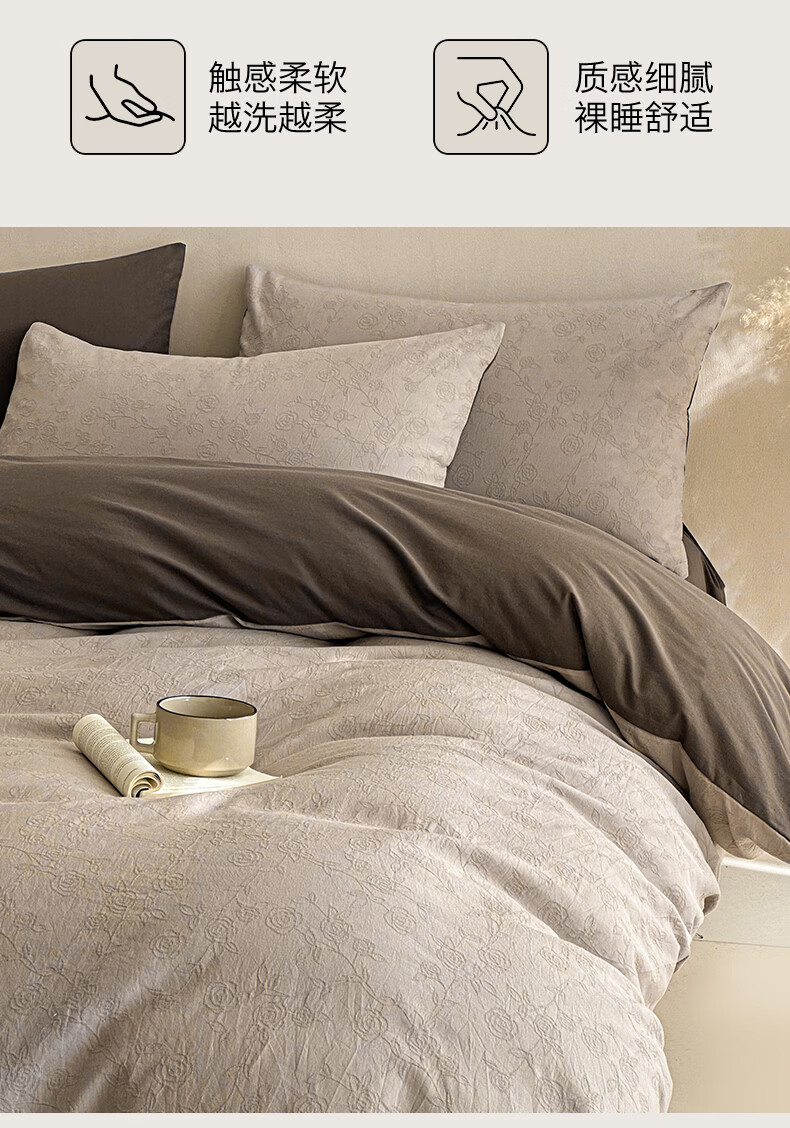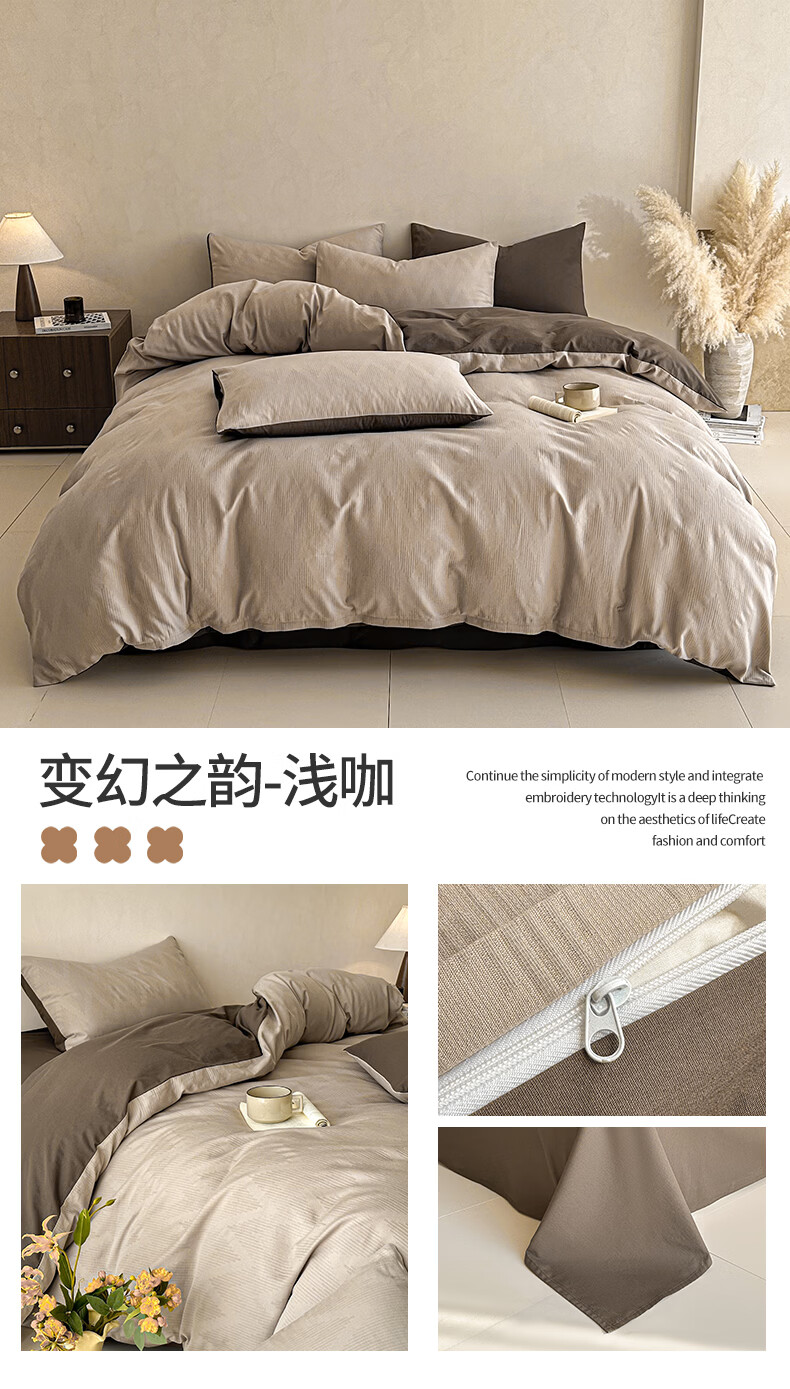 无印良品A类全棉纯棉床上四件套高级轻奢2026新款床单被套罩四季通用裸睡4 半夏-白咖 【100%全棉面料 精美提花工艺】 1.8m 床单款 四件套-被套200x230cm