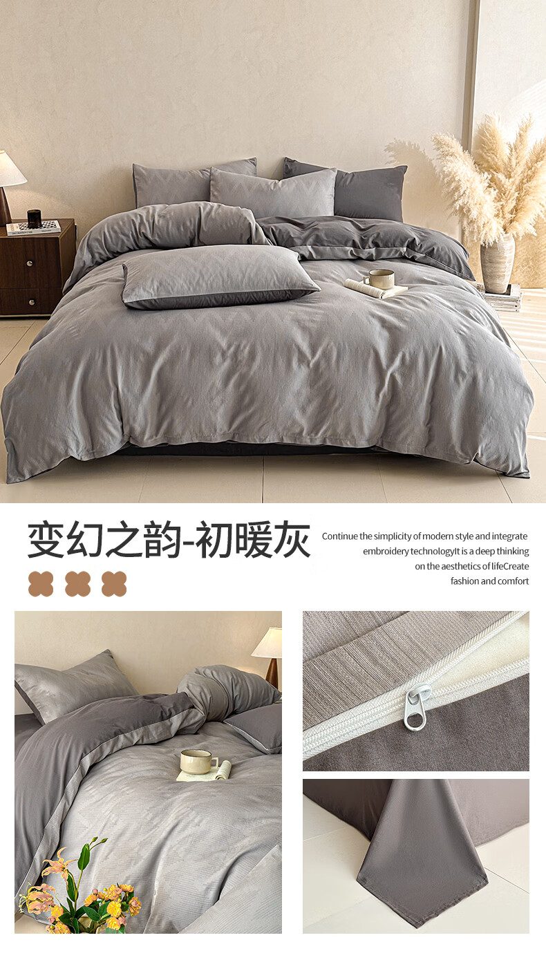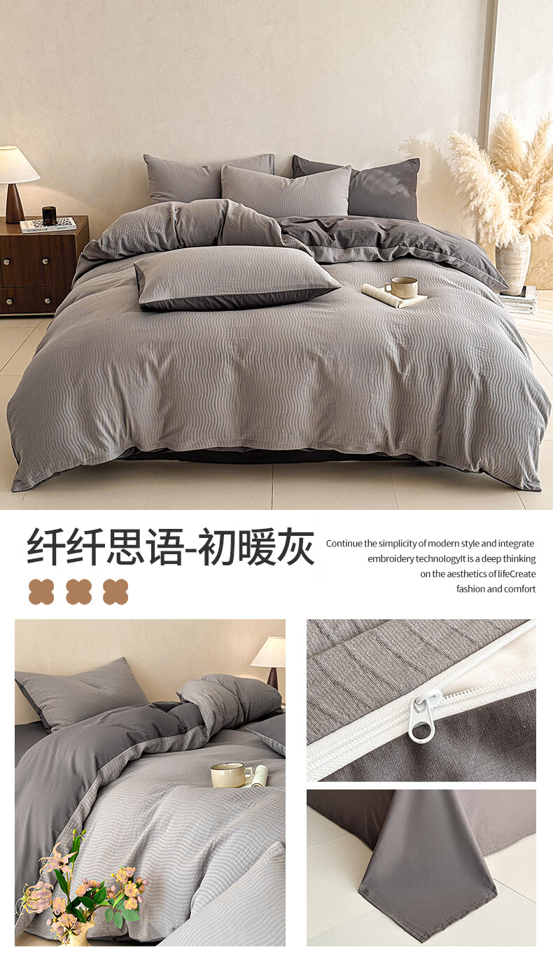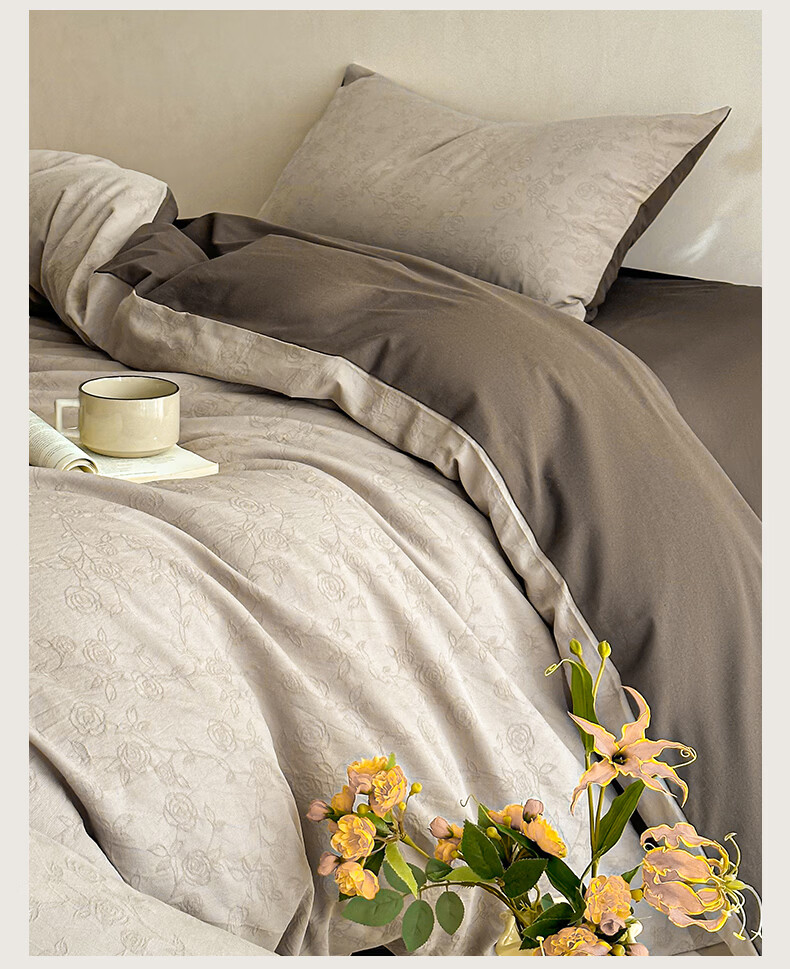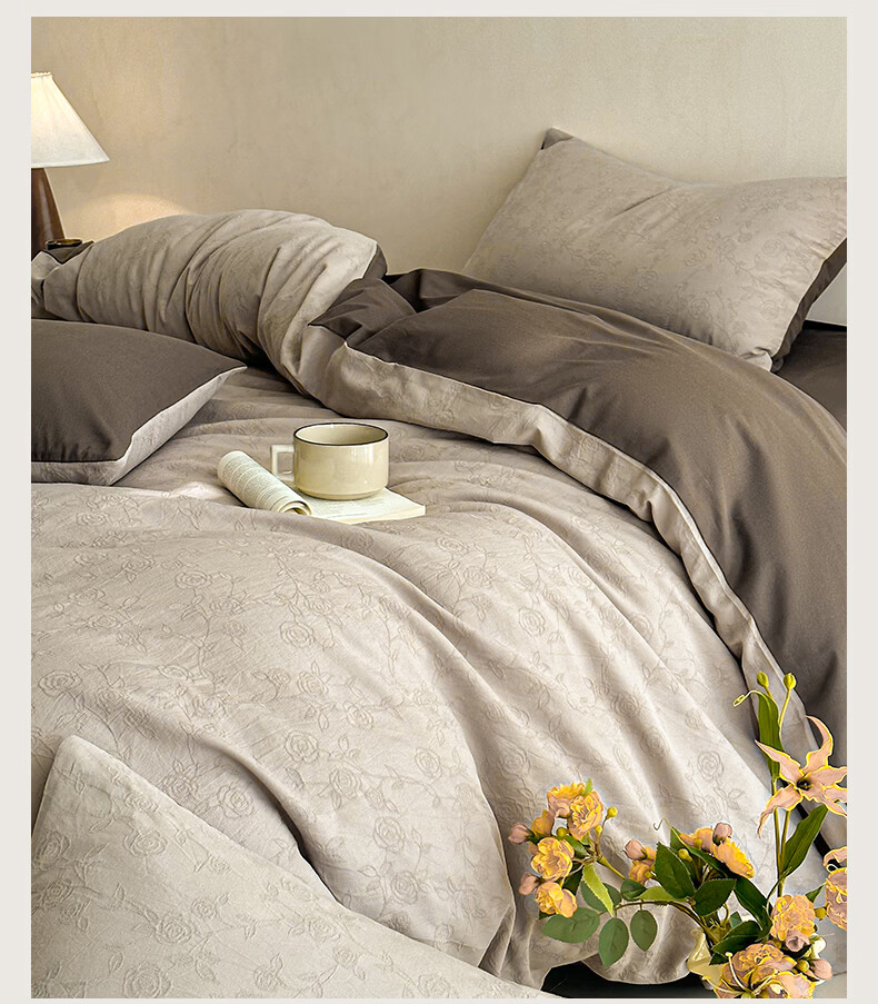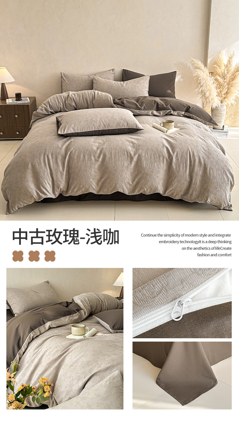 无印良品A类全棉纯棉床上四件套高级轻奢2026新款床单被套罩四季通用裸睡4 半夏-白咖 【100%全棉面料 精美提花工艺】 1.8m 床单款 四件套-被套200x230cm