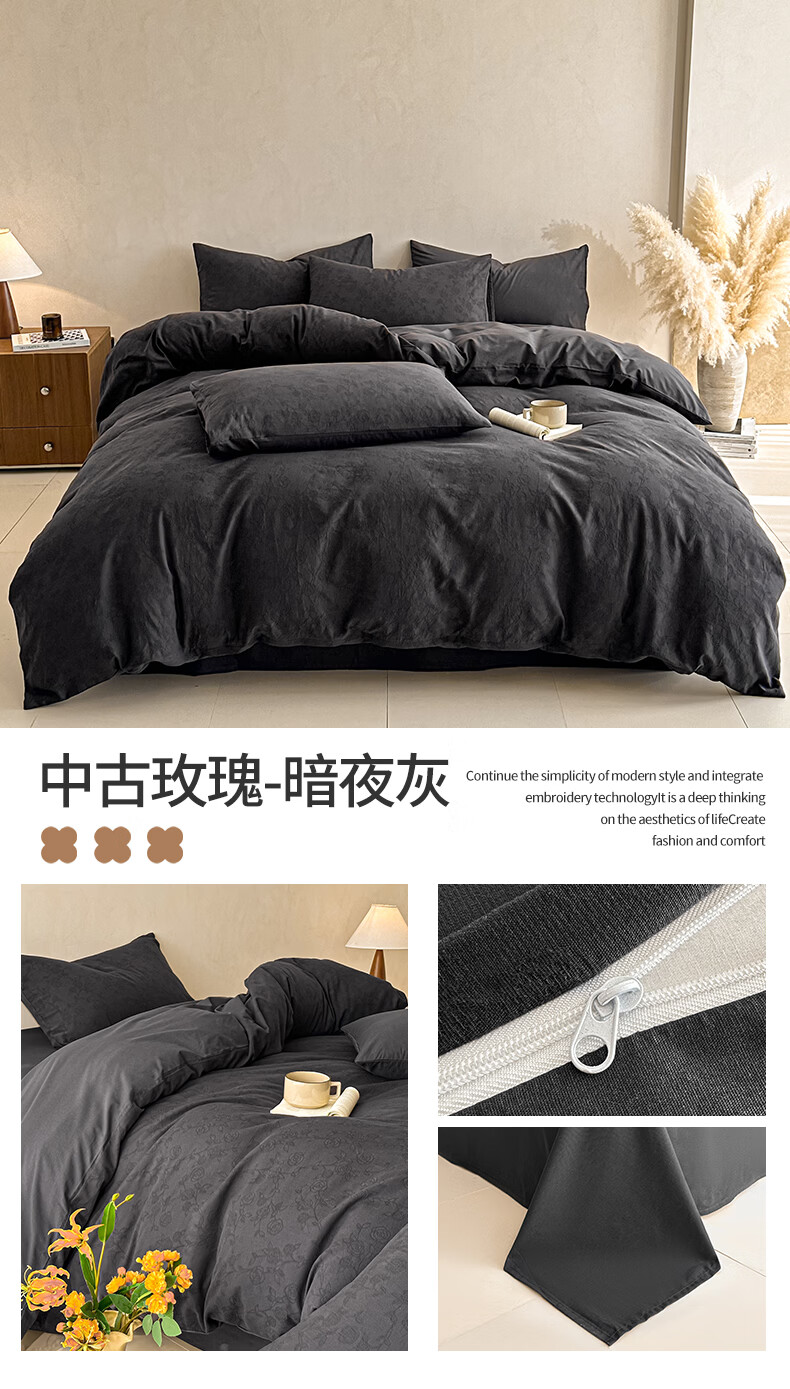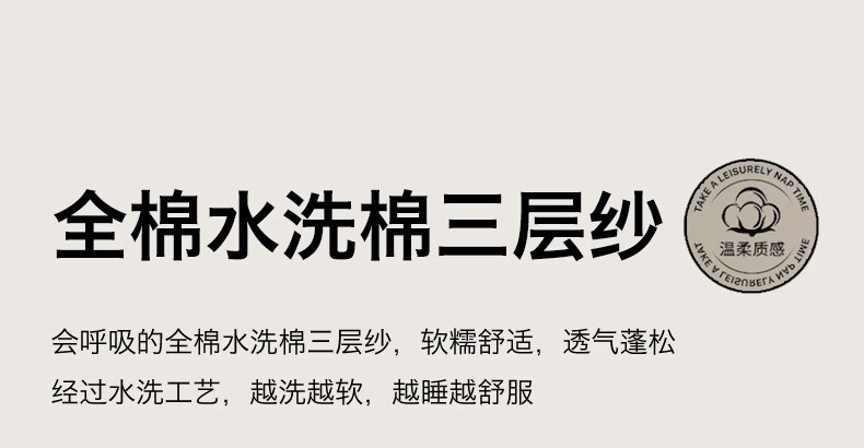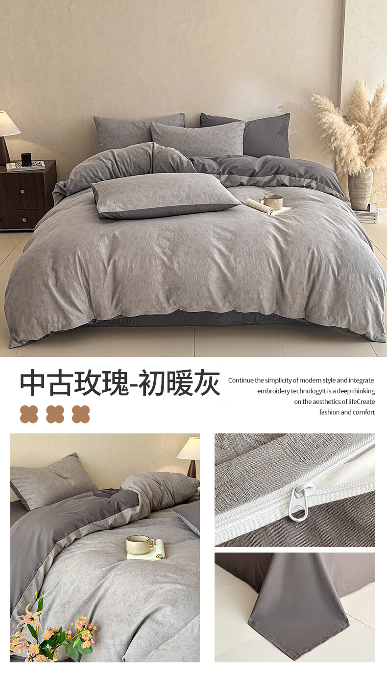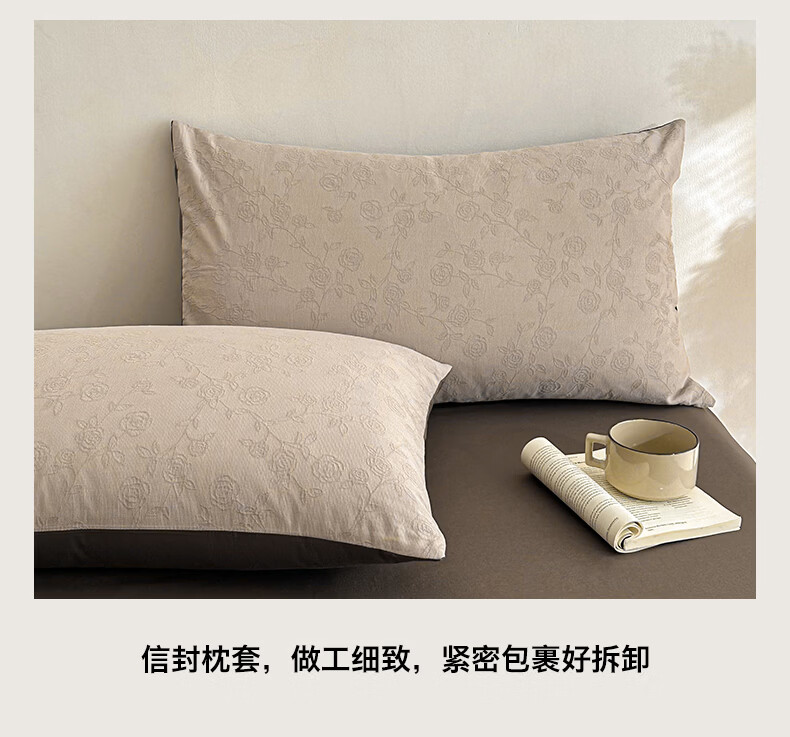 无印良品100%纯棉床上四件套全棉三层纱被套家用轻奢高级感裸睡床品三件套 中古玫瑰-浅咖【全棉三层纱 舒适亲肤】 1.2m 床单款 三件套(被套150*200cm)