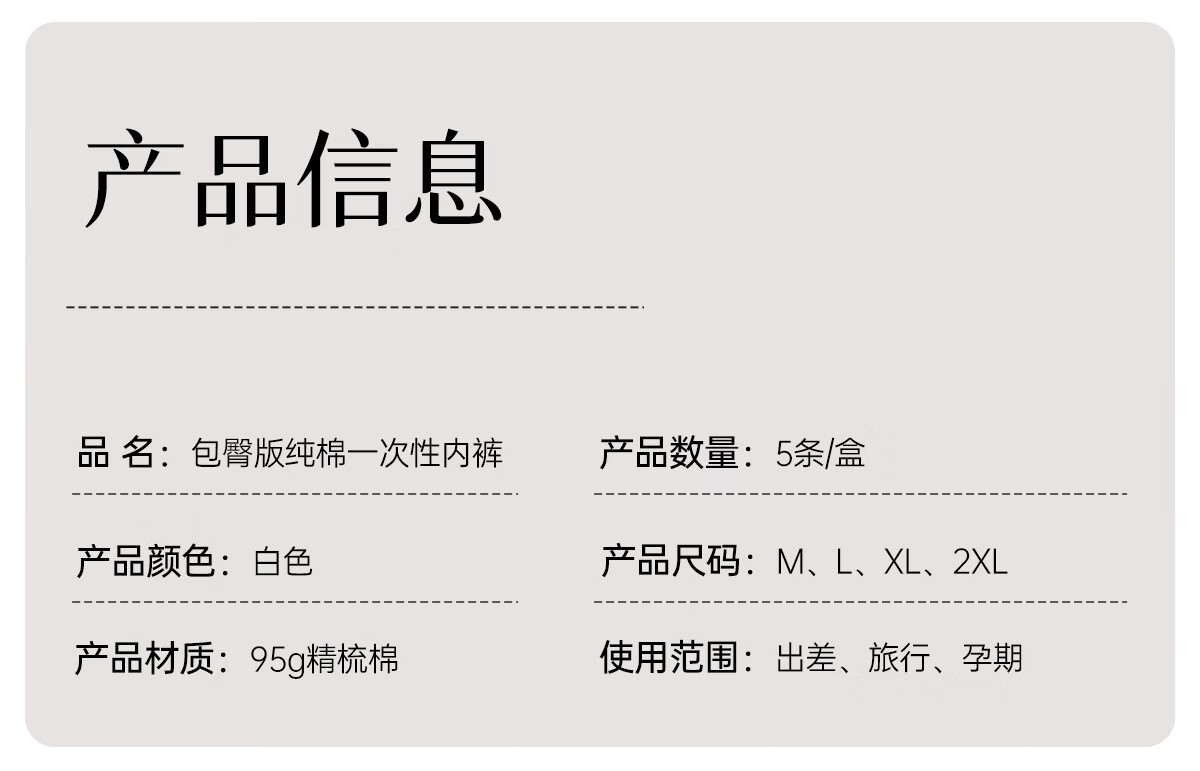 Freego一次性内裤女纯棉免洗5条独立装日抛灭菌旅行出差孕妇产妇白色XL
